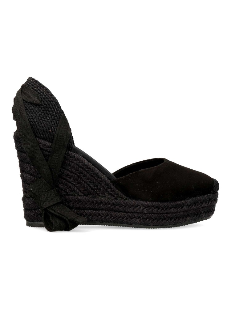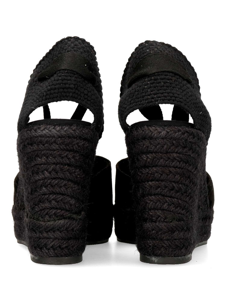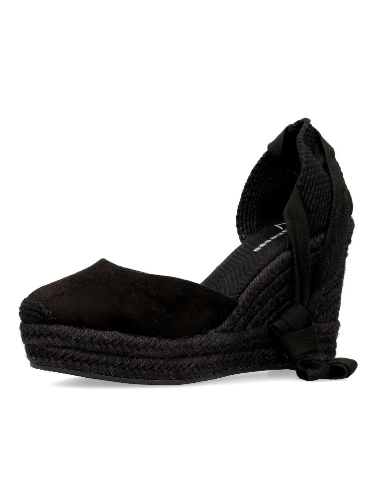 Sandalia esparteña yute de mujer. Cierre mediante cintas al tobillo. Alpargata fabricada en piel sintética, con suela de yute sobre goma. Color negro con yute al tono. Cuña de 9,5 cm. Plataforma 3 cm. Valenciana clásica ideal para ferias y en tu día a día