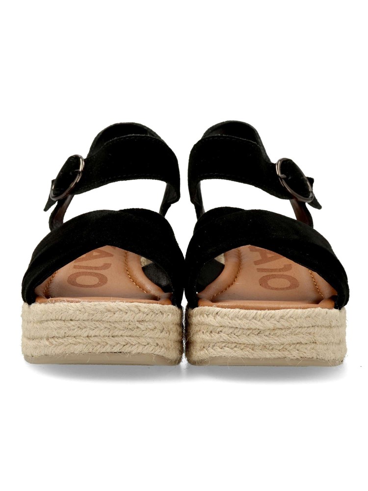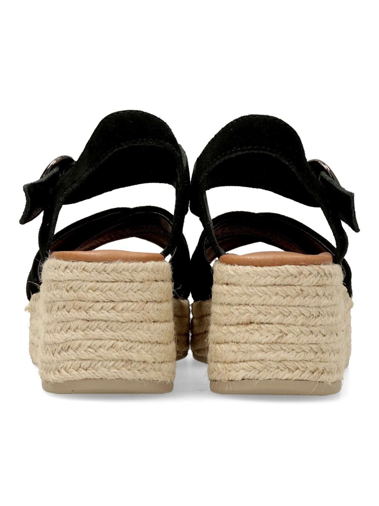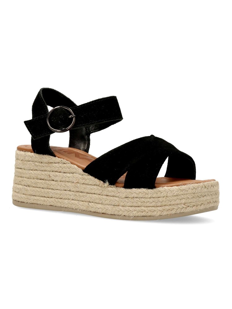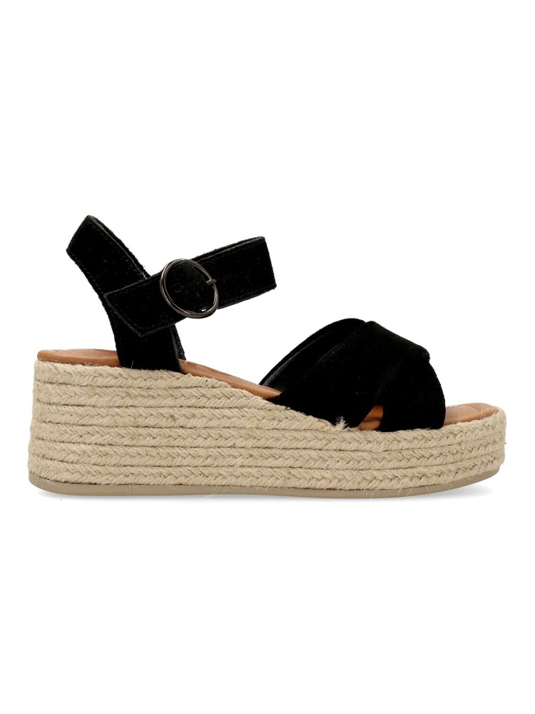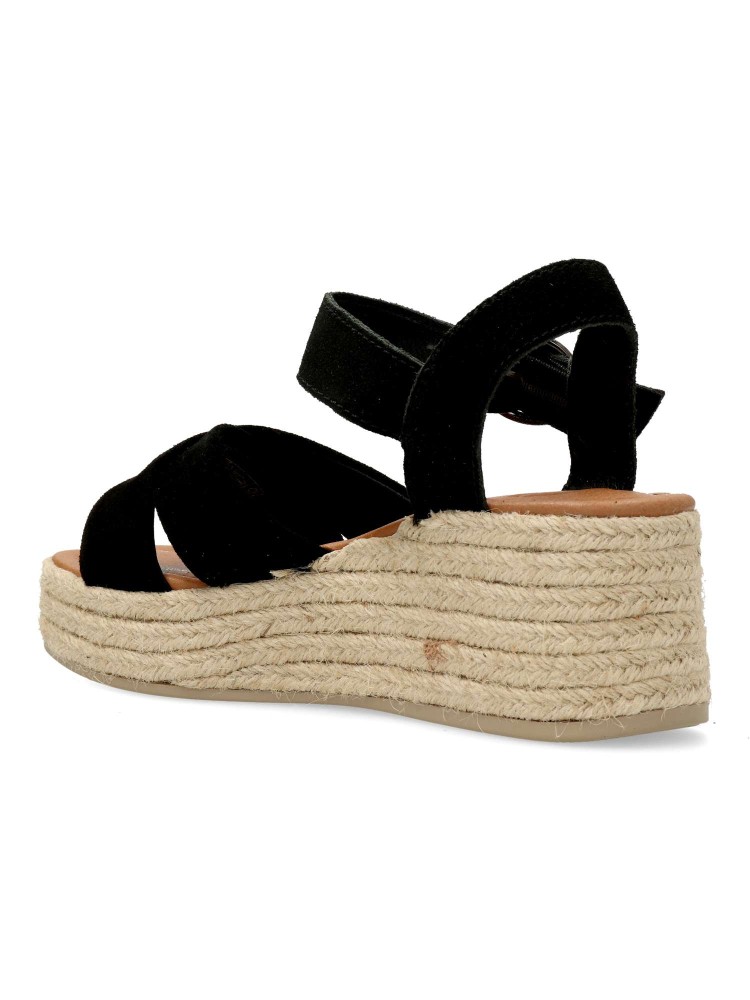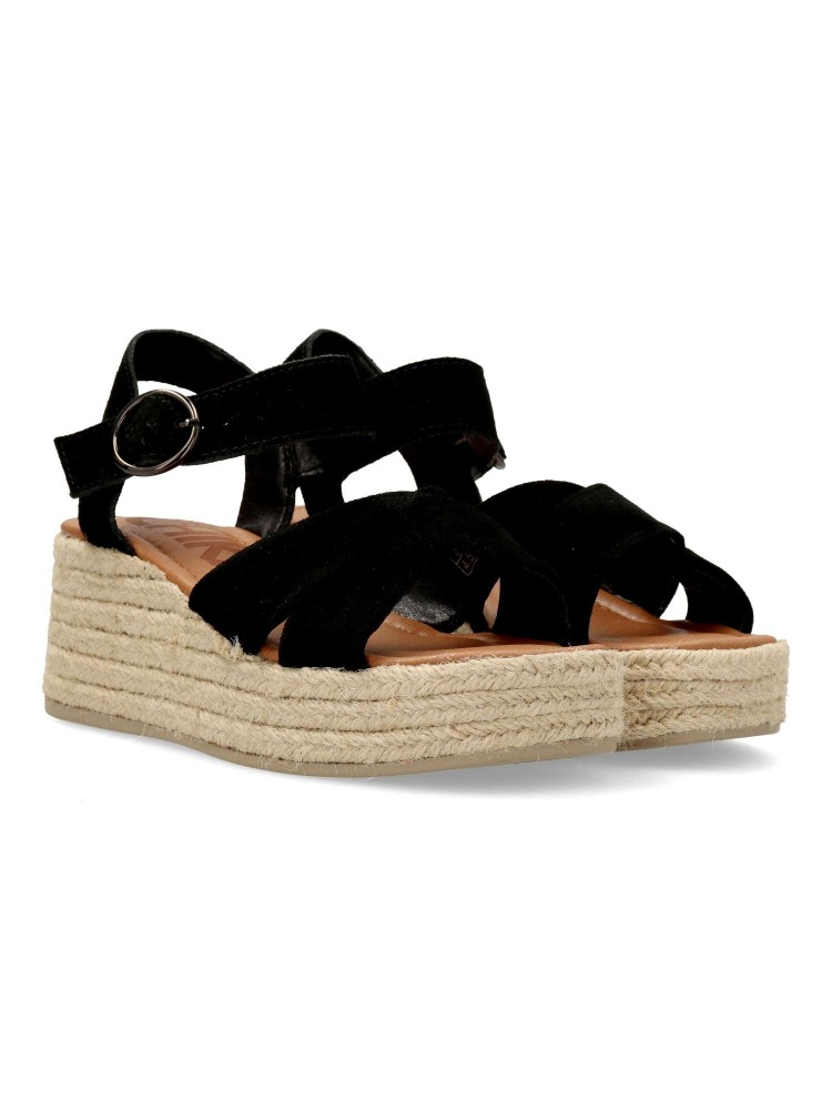 Sandalia de cuña con plataforma de yute trenzado y tiras anchas cruzadas que recogen el pie con suavidad. Pulsera al tobillo y planta acolchada para acompañarte cómoda todo el día. Súbete a ellas y que la altura la pongan tus sandalias y no tus horarios.