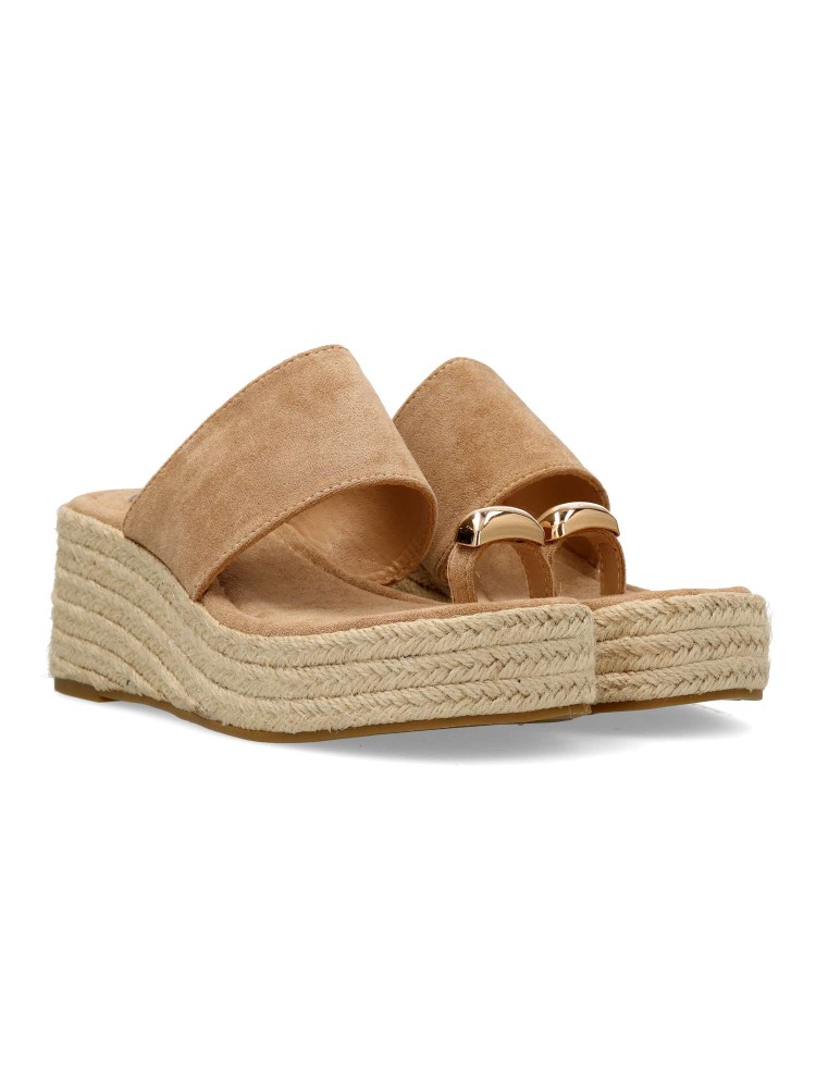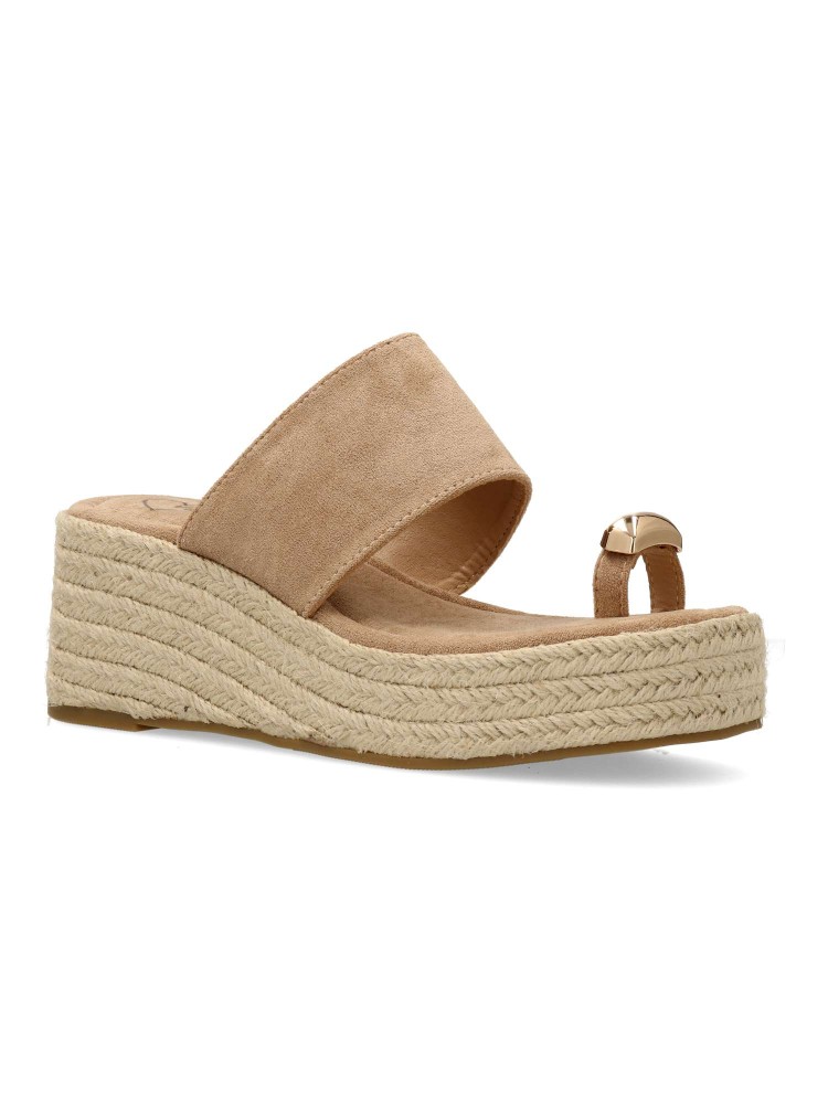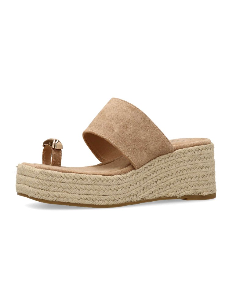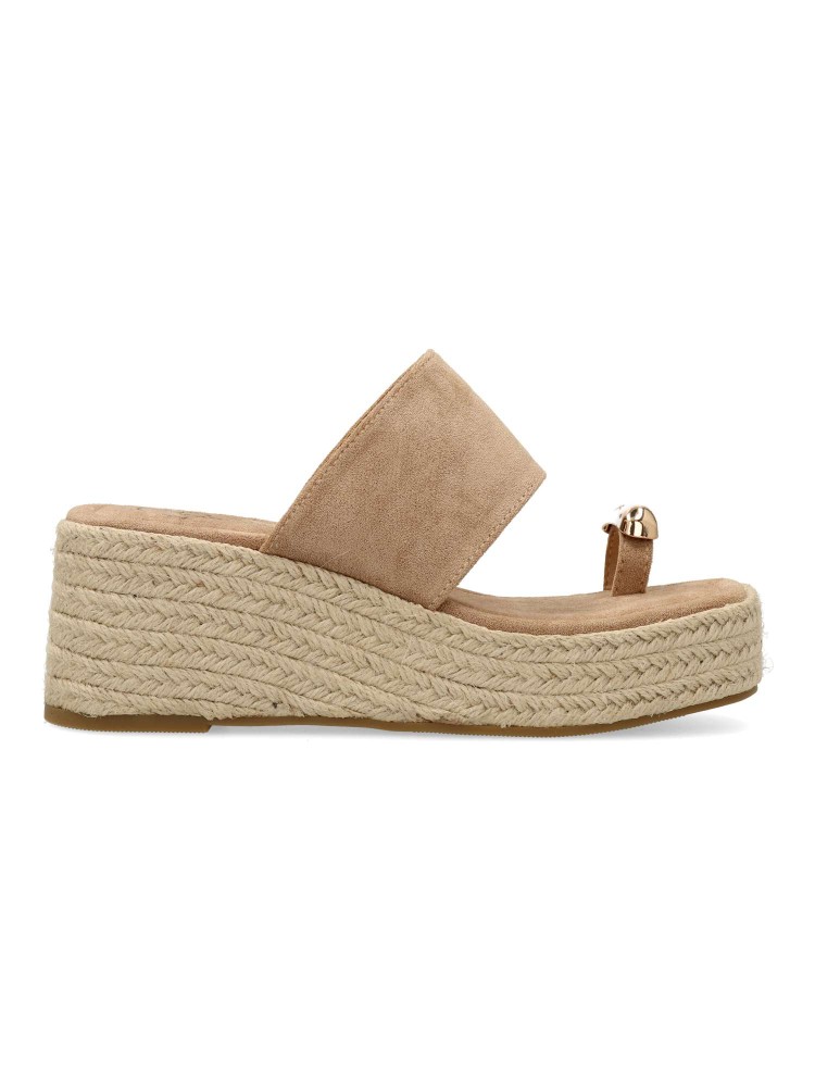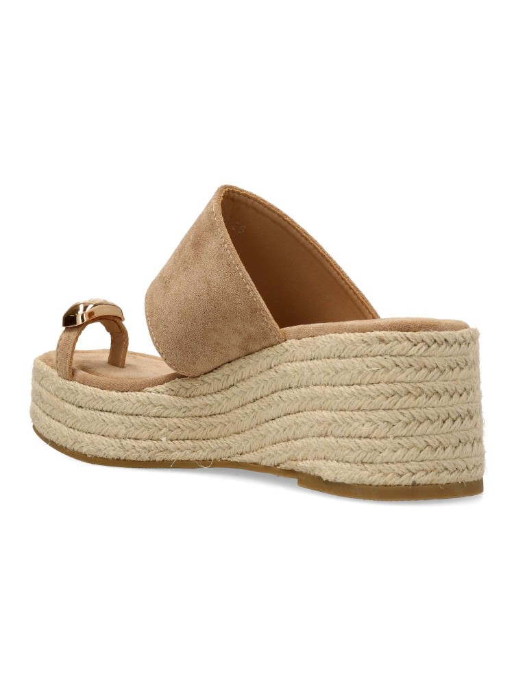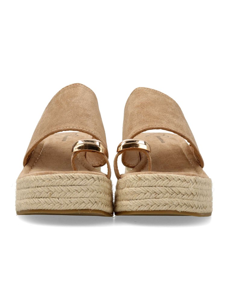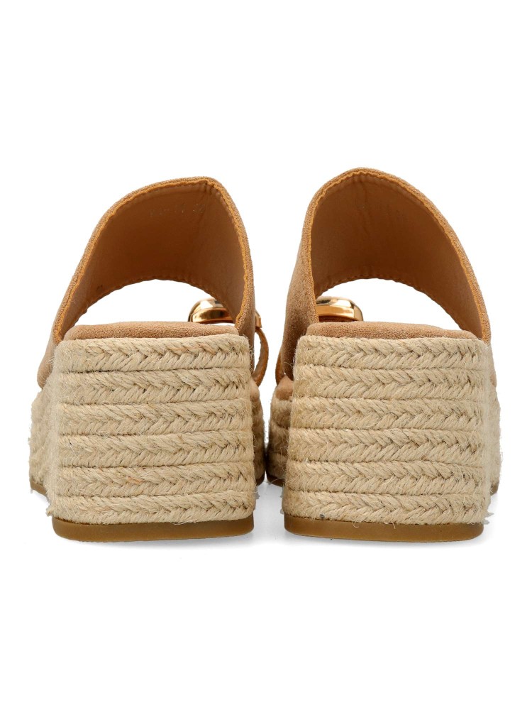 Sandalia de mujer, con pala fabricada en sintético. Alpargata cómoda, con suela de yute sobre goma. Planta acolchada. Color kaki. Cuña de 6,5 cm. con plataforma. Detalle aplique metalizado. Máximo confort en una sandalia ideal con tus outfits de verano.