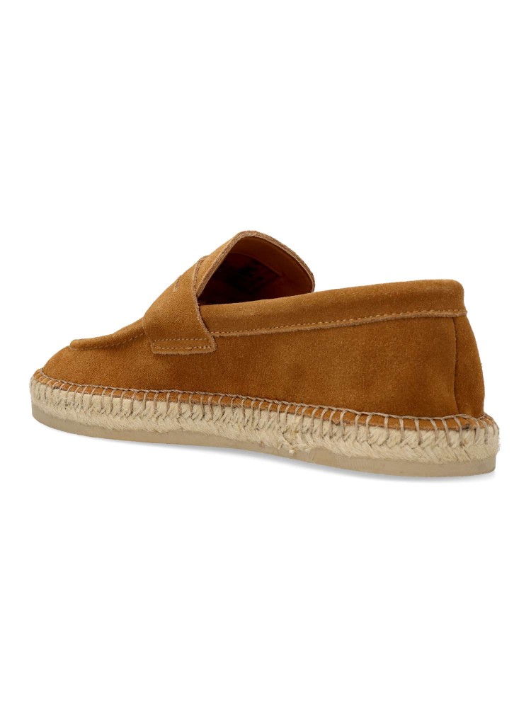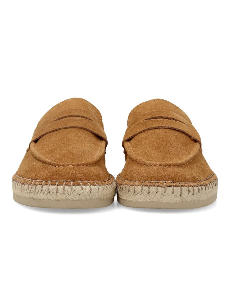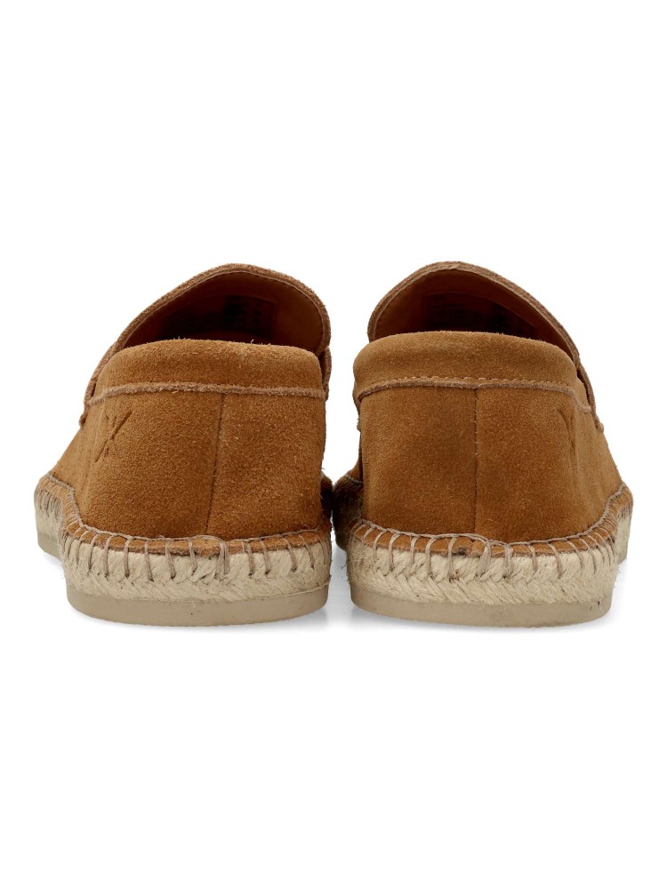 Mocasín de serraje con diseño tipo alpargata, detalle de banda antifaz en el empeine y suela de yute trenzado con base de goma que aporta un toque veraniego y sofisticado.