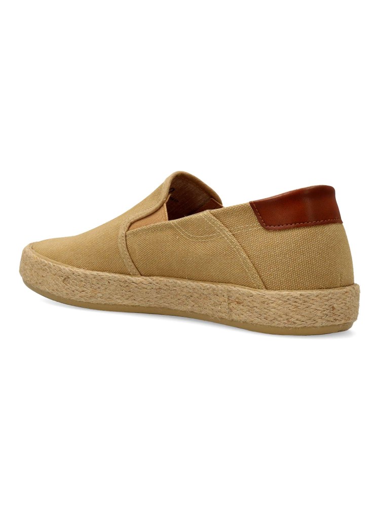 Zapato tipo slip on para hombre, modelo Napoli de Mustang. Su estructura con materiales reciclados y suela con detalle de yute trenzado alrededor, aportando un aire natural y veraniego. Plantillas con tecnología Starfit. Certificado vegano.