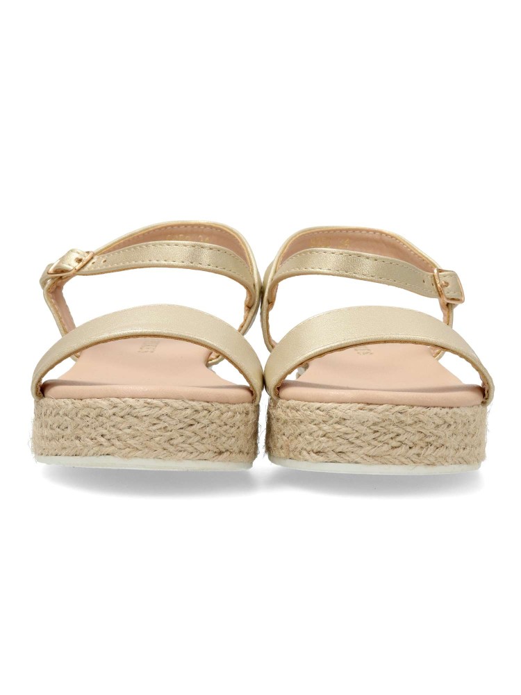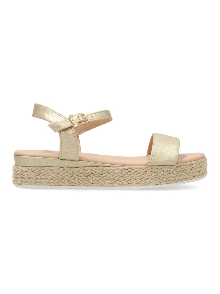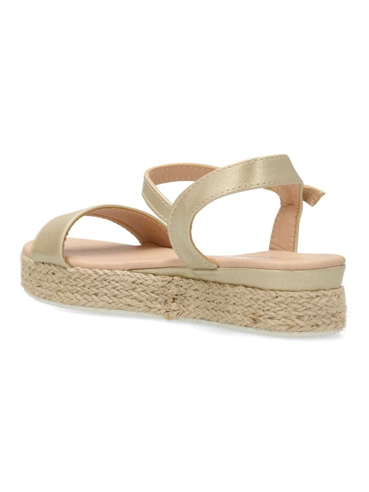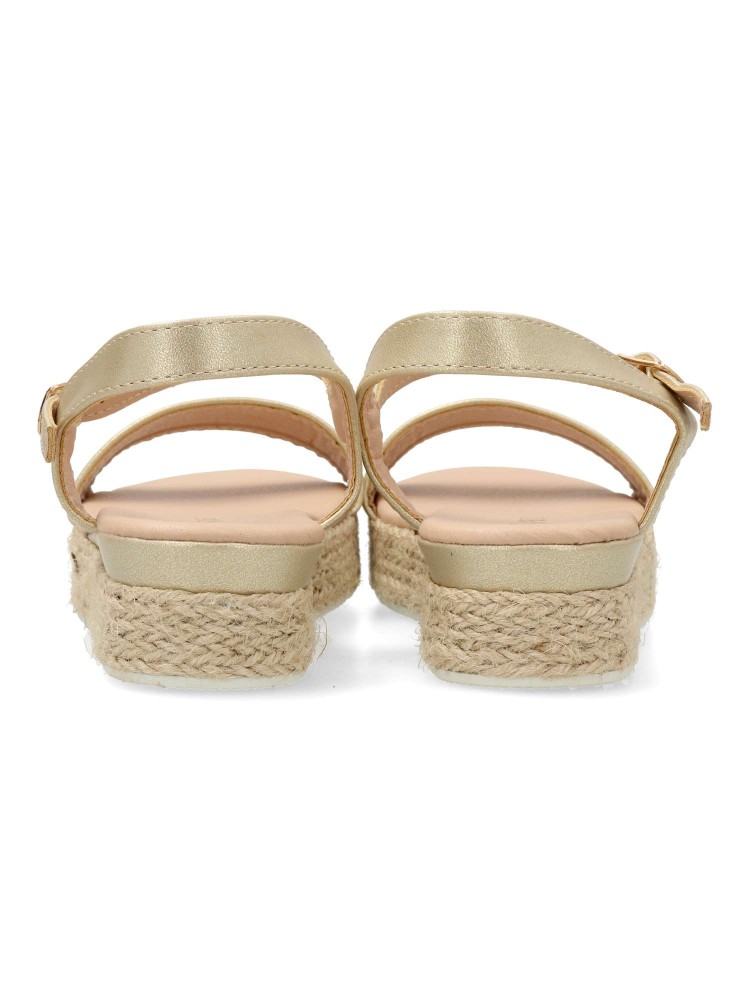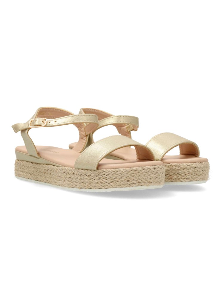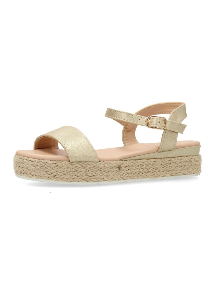 Sandalia alpargata de niña, con cierre de hebilla al tobillo. Fabricada en piel sintética, con suela de goma y detalle de cuerda trenzada alrededor de ella. Altura 3,5 cm. Diseño y confort para niñas, ideal con tus outfits de verano. PEKE´S By Vanessa.