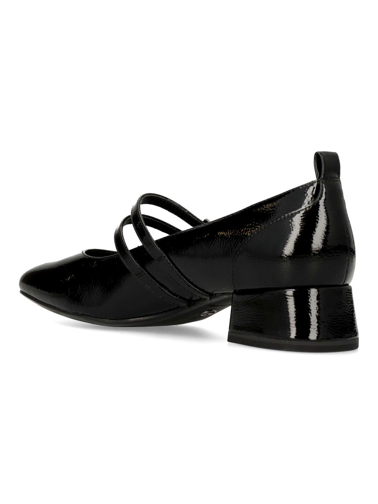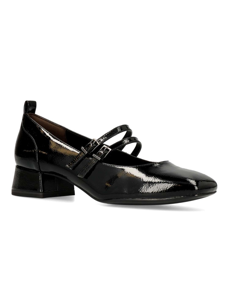 Salón Mary Jane, con tiras al empeine y cierre de hebilla. Fabricados en piel sintética con acabado brillante. Suave plantilla Touchit. Tacón cuadrado de 3,5 cm. Complemento perfecto para looks de invitada de boda, conjuntos de oficina o veladas festivas.