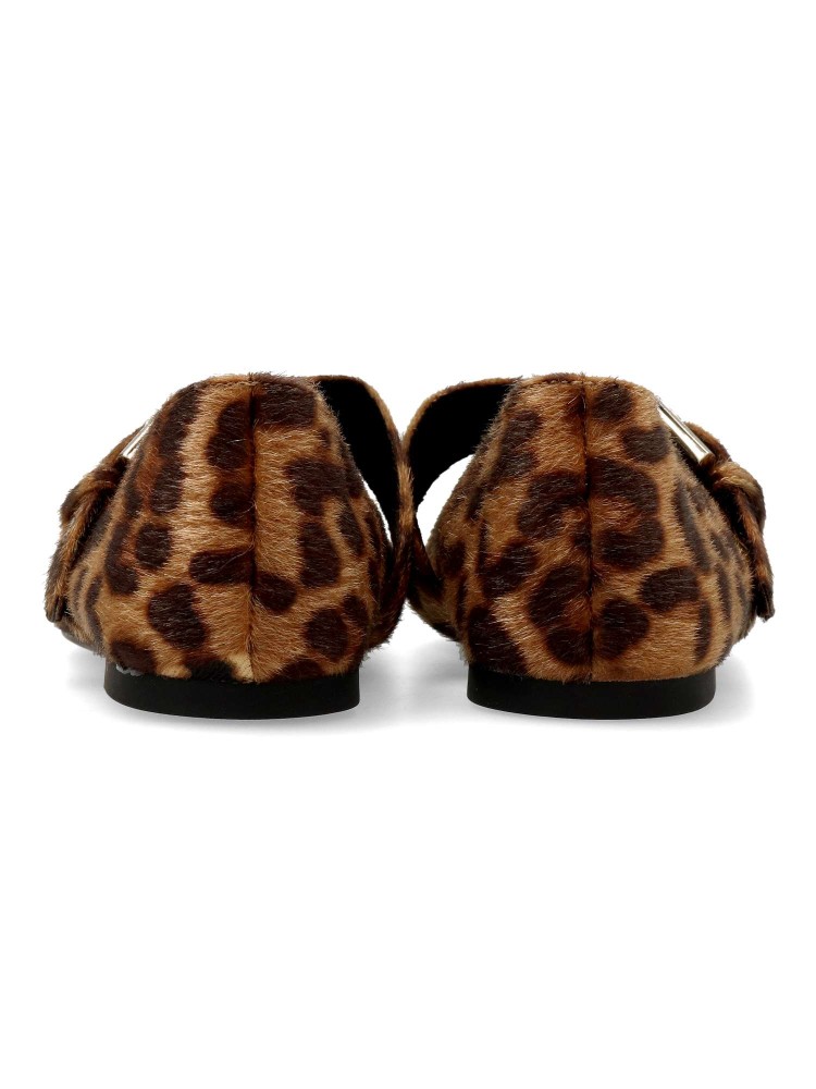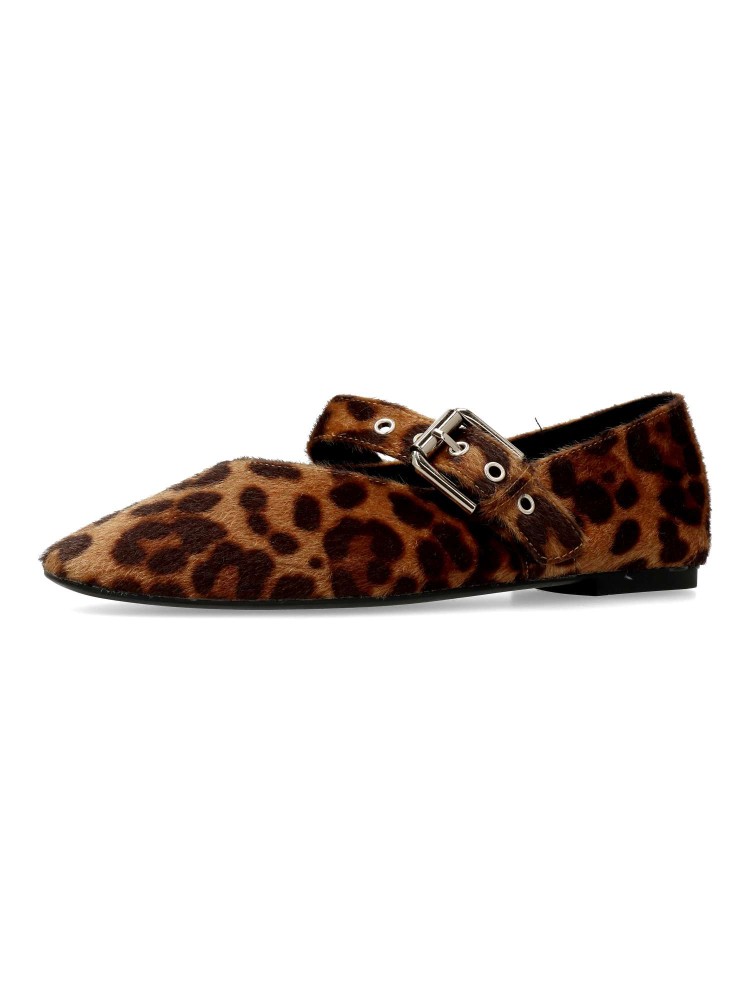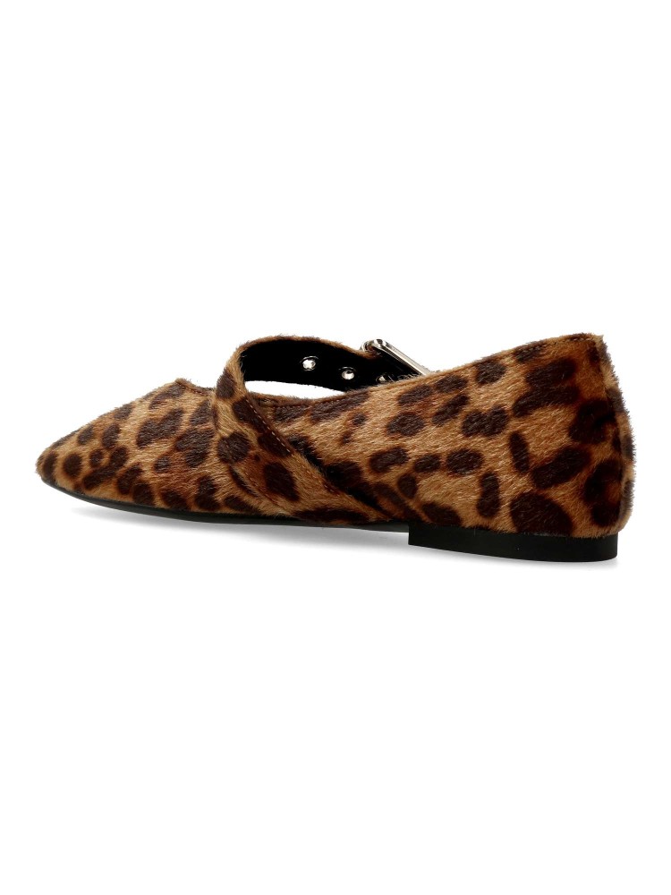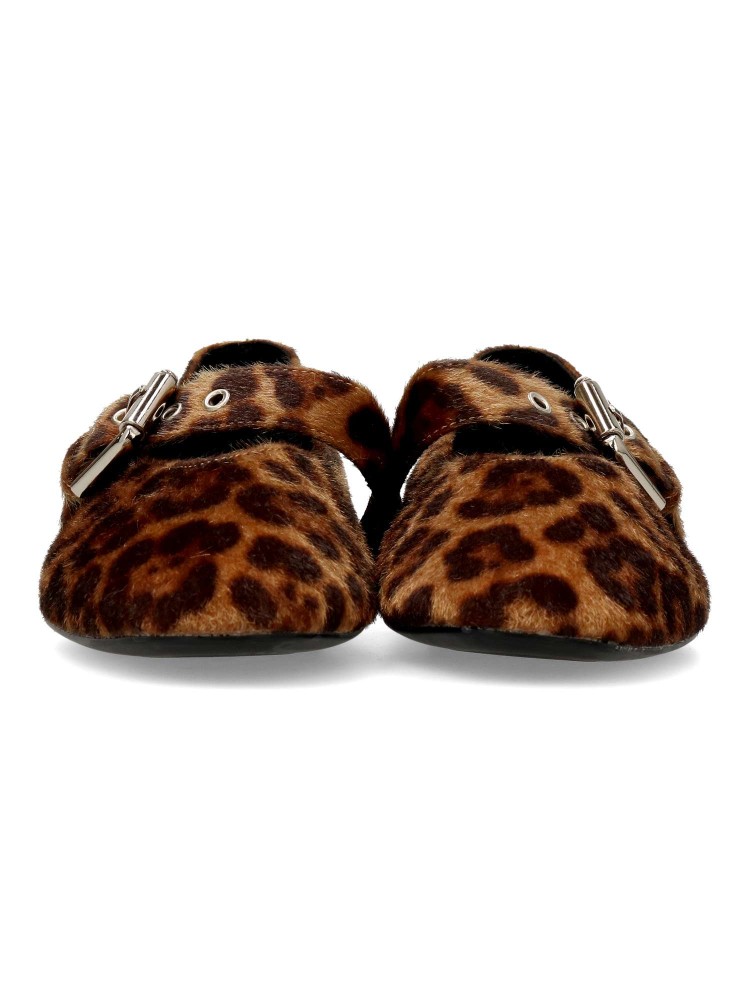 Zapato mercedita cómoda de mujer. Bailarina plana, fabricada en textil print leopardo. Tira al empeine con cierre de hebilla. Planta acolchada. Mary Jane cómoda, resistente, original y muy versátil, fácil de conjuntar con todos tus outfits.
