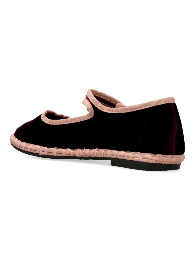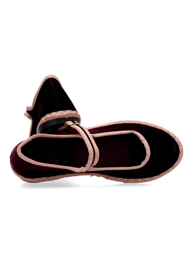 Zapato mercedita cómoda de mujer. Bailarina plana, fabricada en textil terciopelo suave. Tira al empeine con cierre de hebilla. Forro textil suave. Planta acolchada. Cómodo, resistente, atemporal y muy versátil para la mujer de hoy en día.