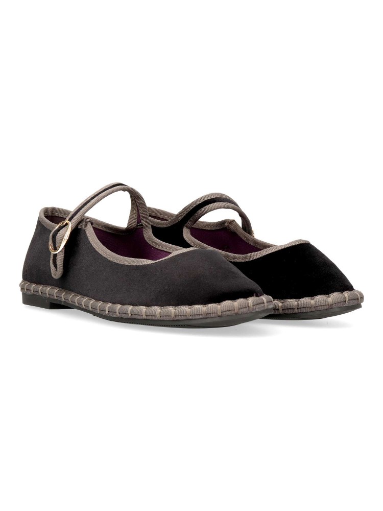 Zapato mercedita cómoda de mujer. Bailarina plana, fabricada en textil terciopelo suave. Tira al empeine con cierre de hebilla. Forro textil suave. Planta acolchada. Cómodo, resistente, atemporal y muy versátil para la mujer de hoy en día.