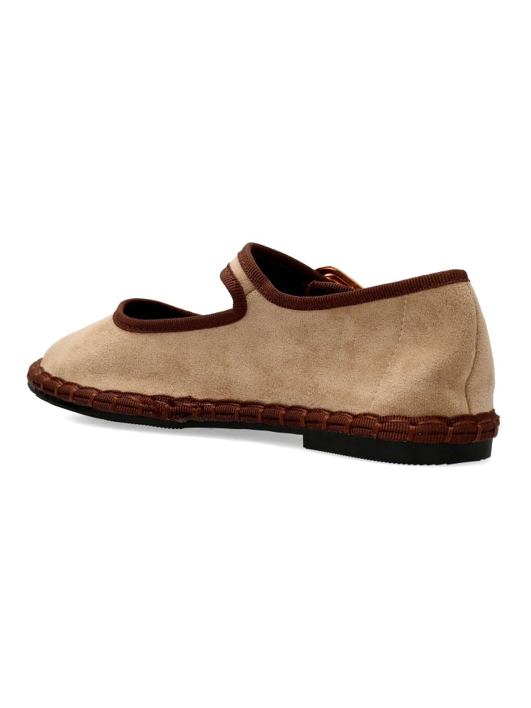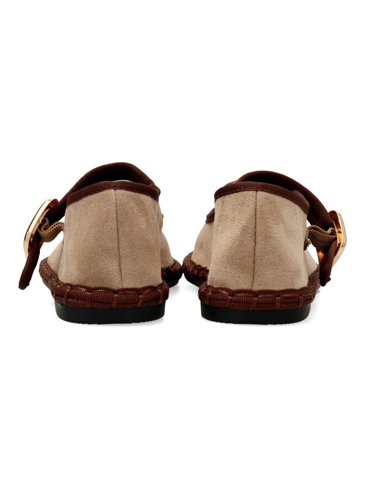 Zapato mercedita cómoda de mujer. Bailarina plana, fabricada en textil antelina aterciopelada. Tira al empeine con cierre de hebilla. Forro textil transpirable. Planta acolchada. Cómodo, resistente, atemporal y muy versátil para la mujer de hoy en día.