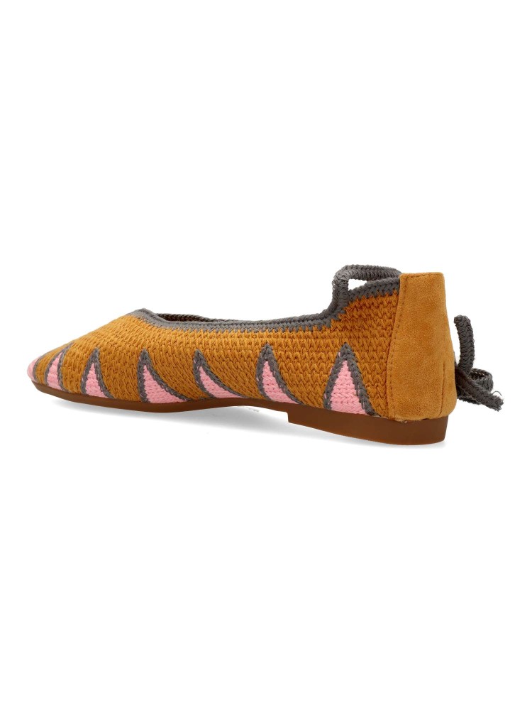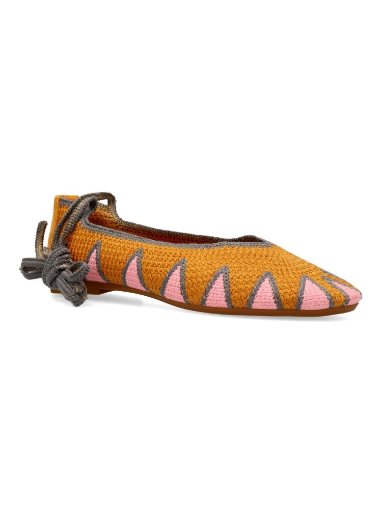 Zapato bailarina de crochet para mujer. Mercedita plana, fabricada en textil, con suela de goma flexible. Planta acolchada. Color amarillo. Diseño moderno y romántico, perfectas para el uso diario o para darle un toque especial a tu look de primavera.