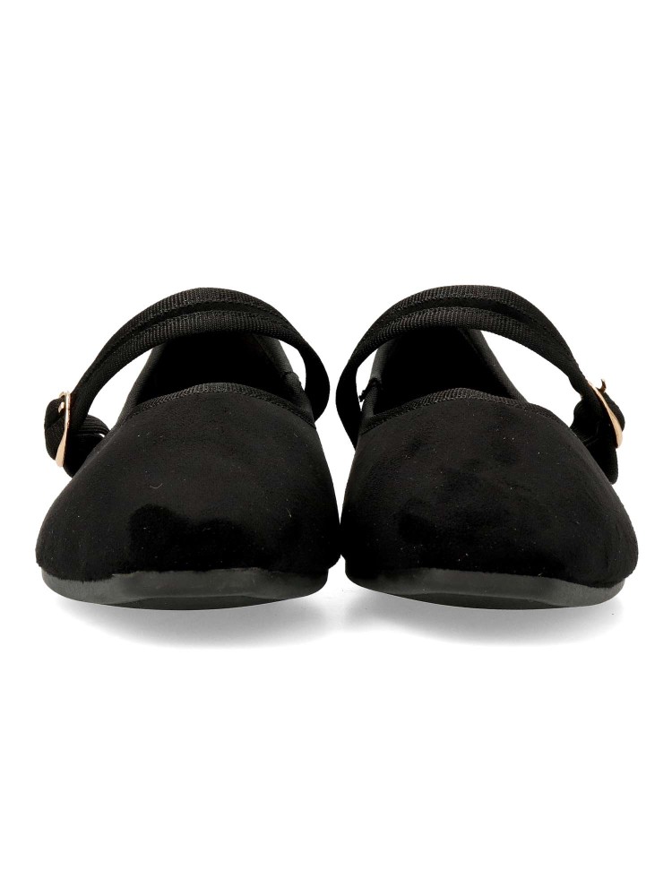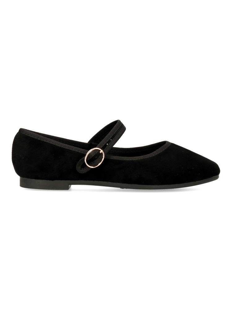 Zapato bailarina Mary Jane plana. Sabrina de mujer, fabricada en antelina, con suela de goma. Tira al empeine con cierre de hebilla. Planta acolchada. Color negro. Diseño versátil y fácil de combinar, que no puede faltar en tu fondo de armario.