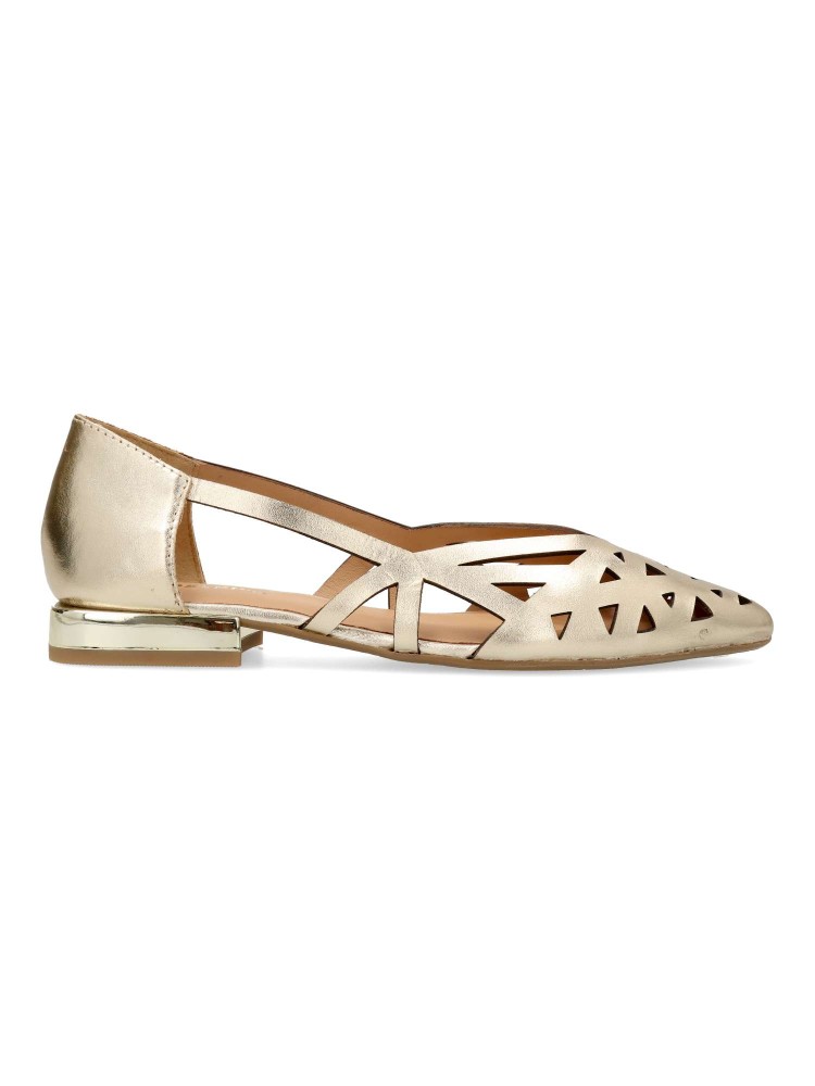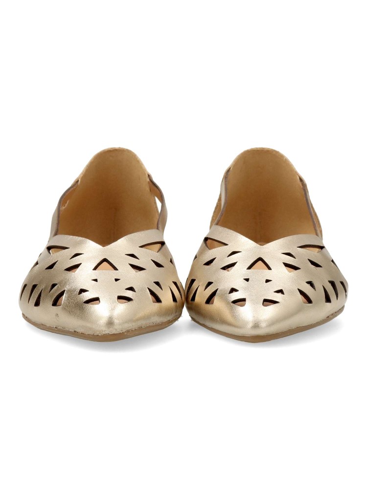 Bailarinas de piel caladas. Modelo plano, fabricado en piel, con suela de goma. Plantilla de piel suave y acolchada. Diseño elegante y cómodo, ideal para combinar con tus vestidos y faldas en verano.