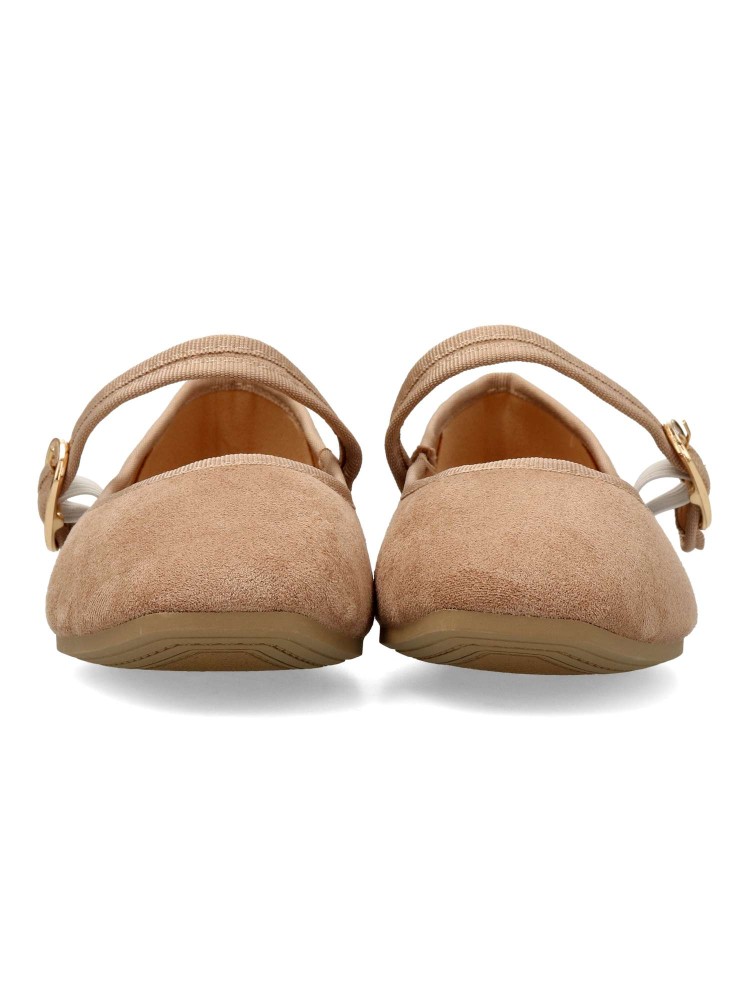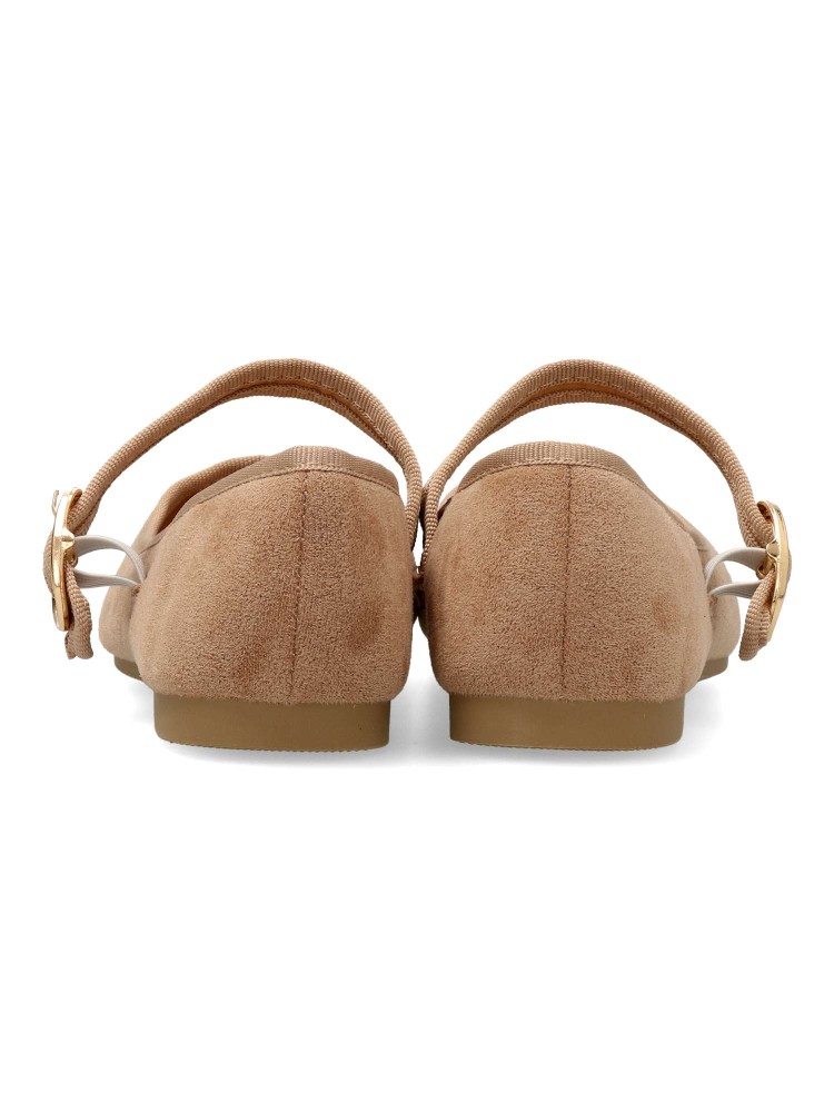Zapato bailarina Mary Jane plana. Sabrina de mujer, fabricada en antelina, con suela de goma. Tira al empeine con cierre de hebilla. Planta acolchada. Color kaki. Diseño versátil y fácil de combinar, que no puede faltar en tu fondo de armario.