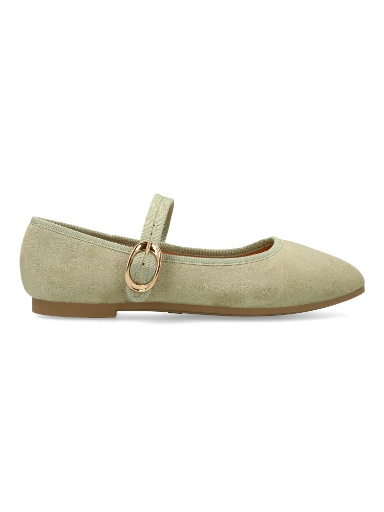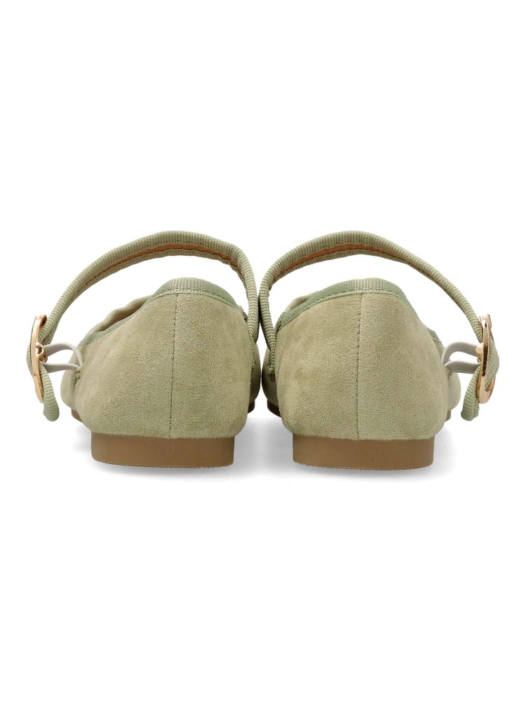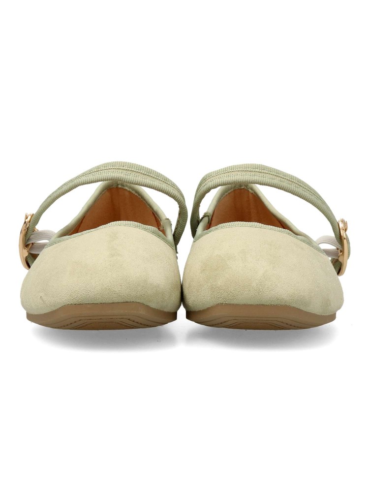 Zapato bailarina Mary Jane plana. Sabrina de mujer, fabricada en antelina, con suela de goma. Tira al empeine con cierre de hebilla. Planta acolchada. Color verde. Diseño versátil y fácil de combinar, que no puede faltar en tu fondo de armario.