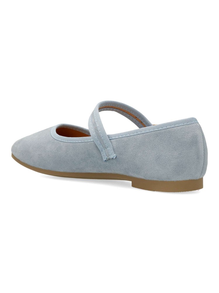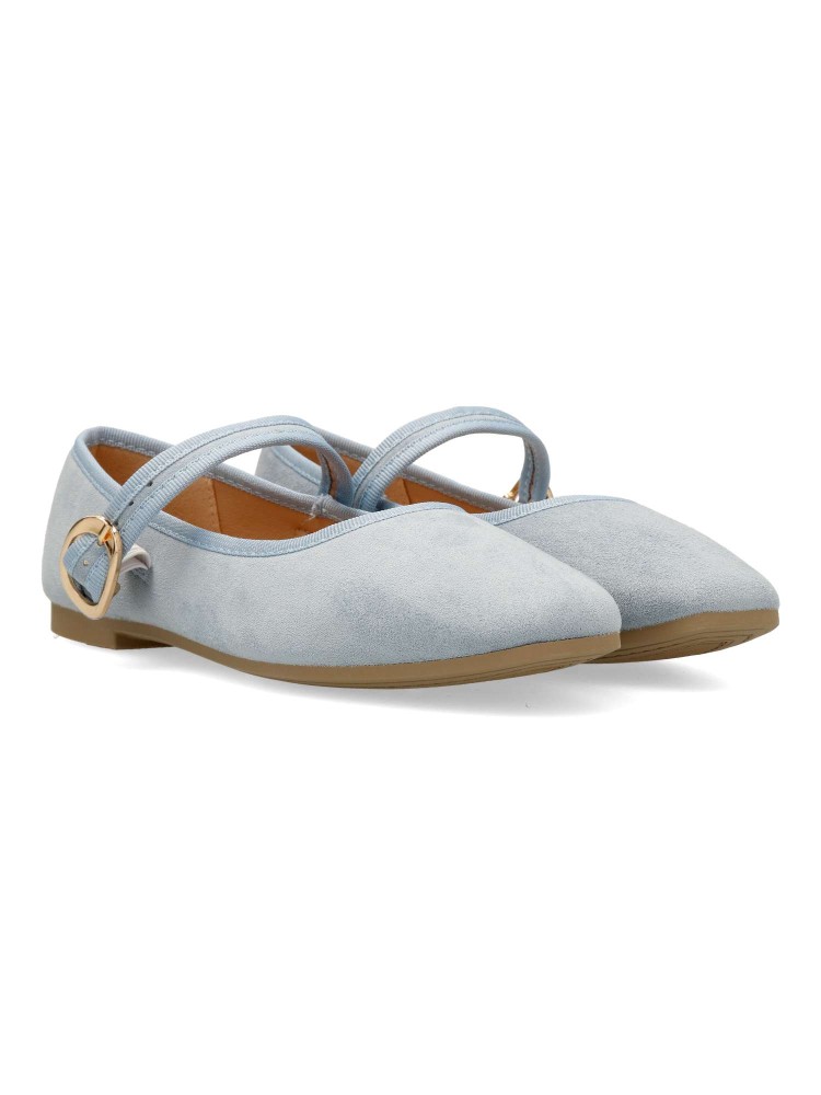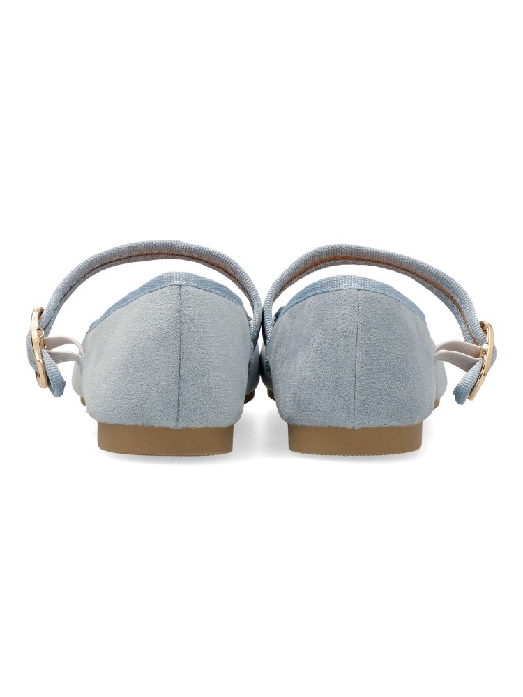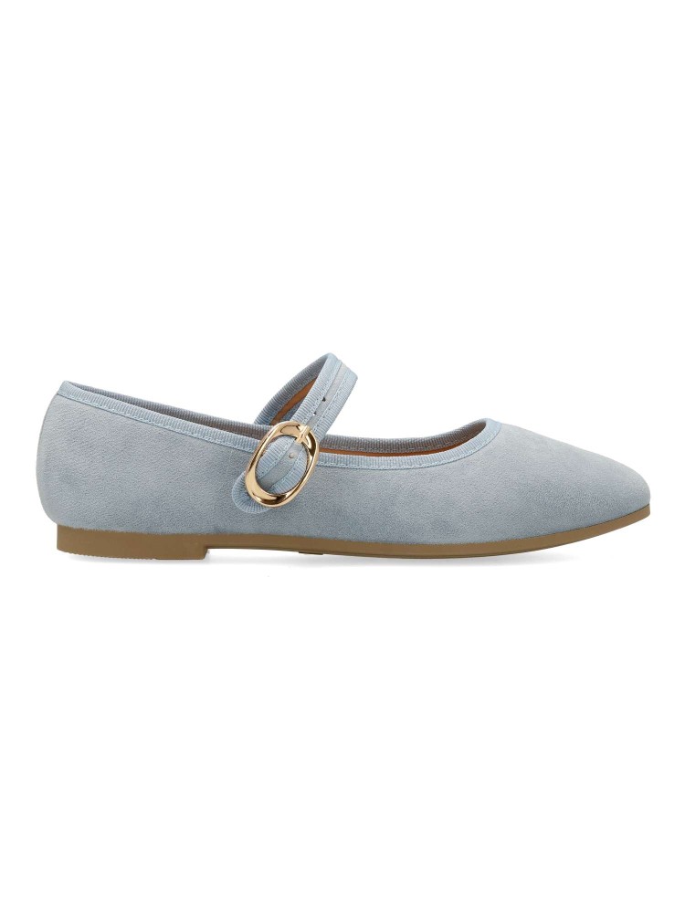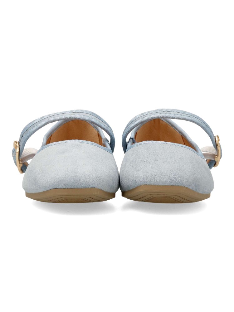 Zapato bailarina Mary Jane plana. Sabrina de mujer, fabricada en antelina, con suela de goma. Tira al empeine con cierre de hebilla. Planta acolchada. Color jeans. Diseño versátil y fácil de combinar, que no puede faltar en tu fondo de armario.