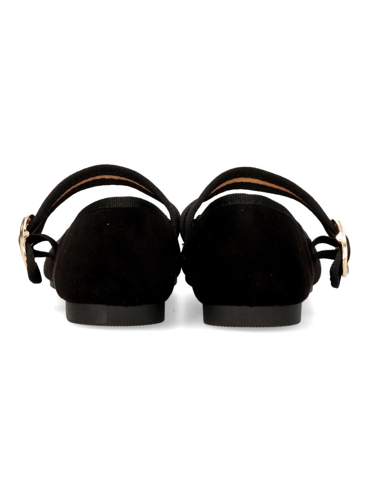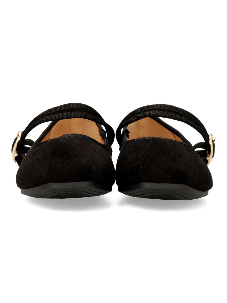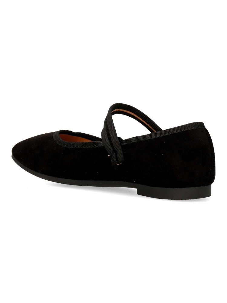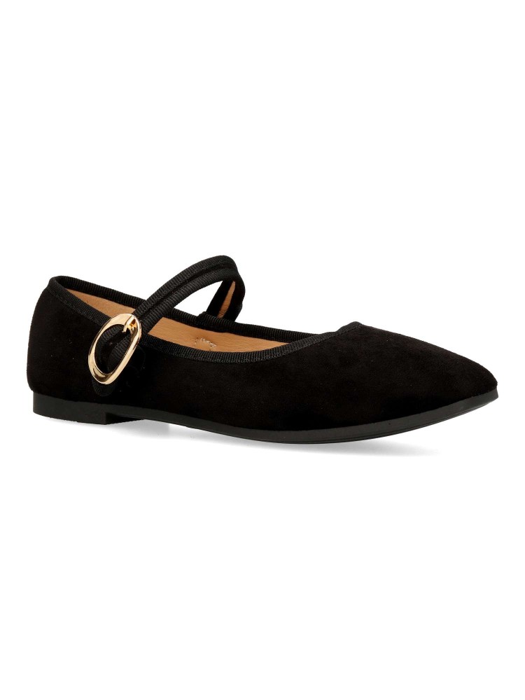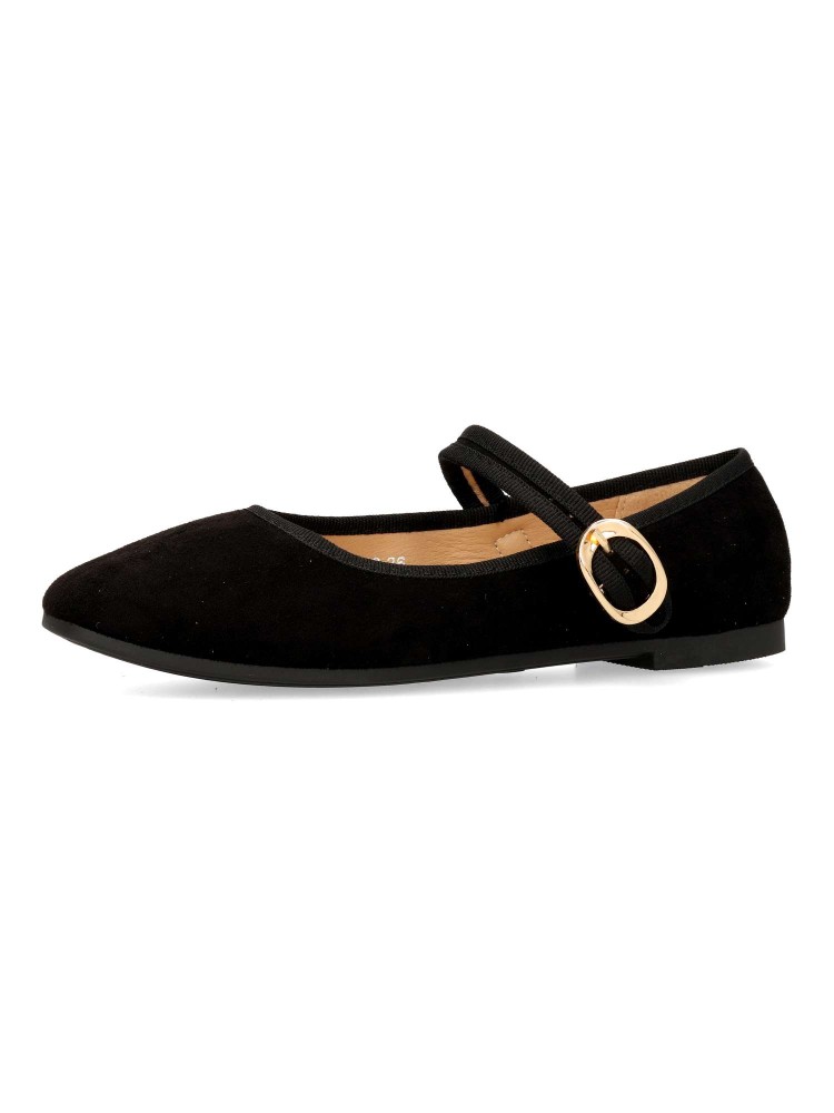 Zapato bailarina Mary Jane plana. Sabrina de mujer, fabricada en antelina, con suela de goma. Tira al empeine con cierre de hebilla. Planta acolchada. Color negro. Diseño versátil y fácil de combinar, que no puede faltar en tu fondo de armario.