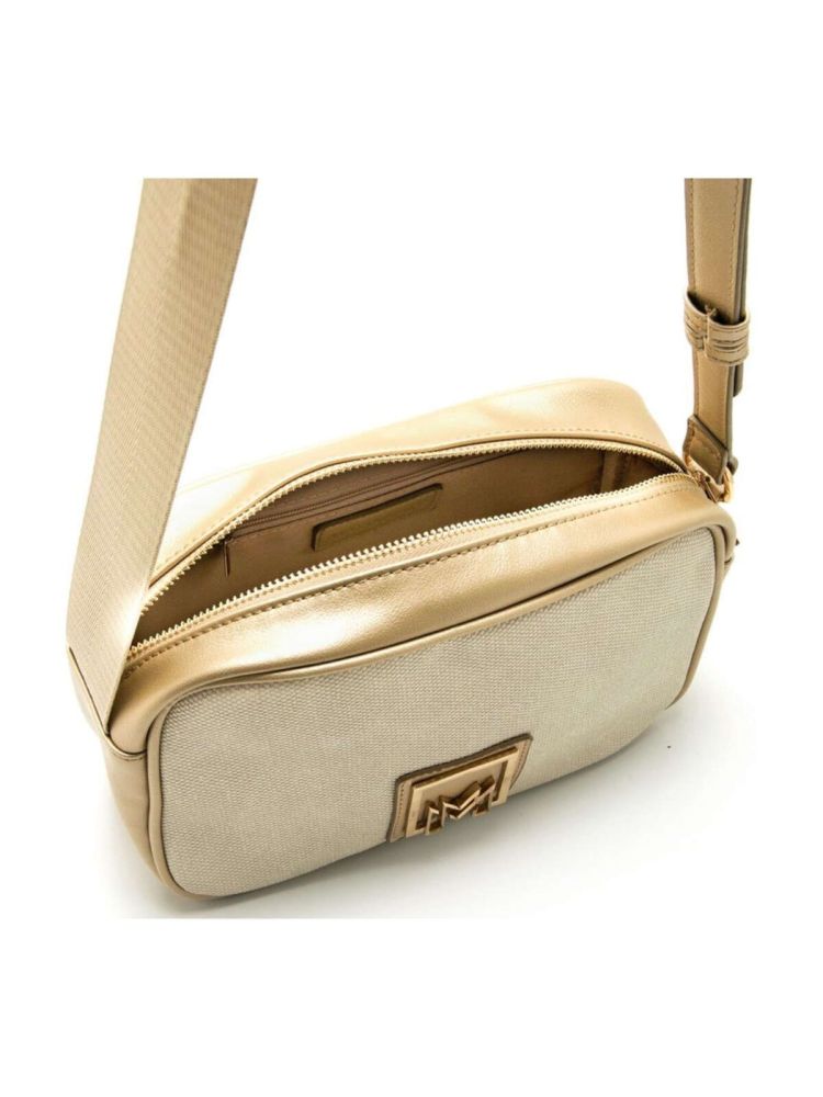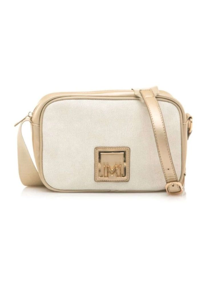 Bolso Sile Mariamare de mujer, fabricado en estilo bandolera de color crema y platino. Cierre de cremallera. Bolsillos en el interior. Asa alargada regulable. Perfecto para dar un toque de color a tus looks diarios. Base: 9cm. Altura: 14cm. Ancho: 22cm.