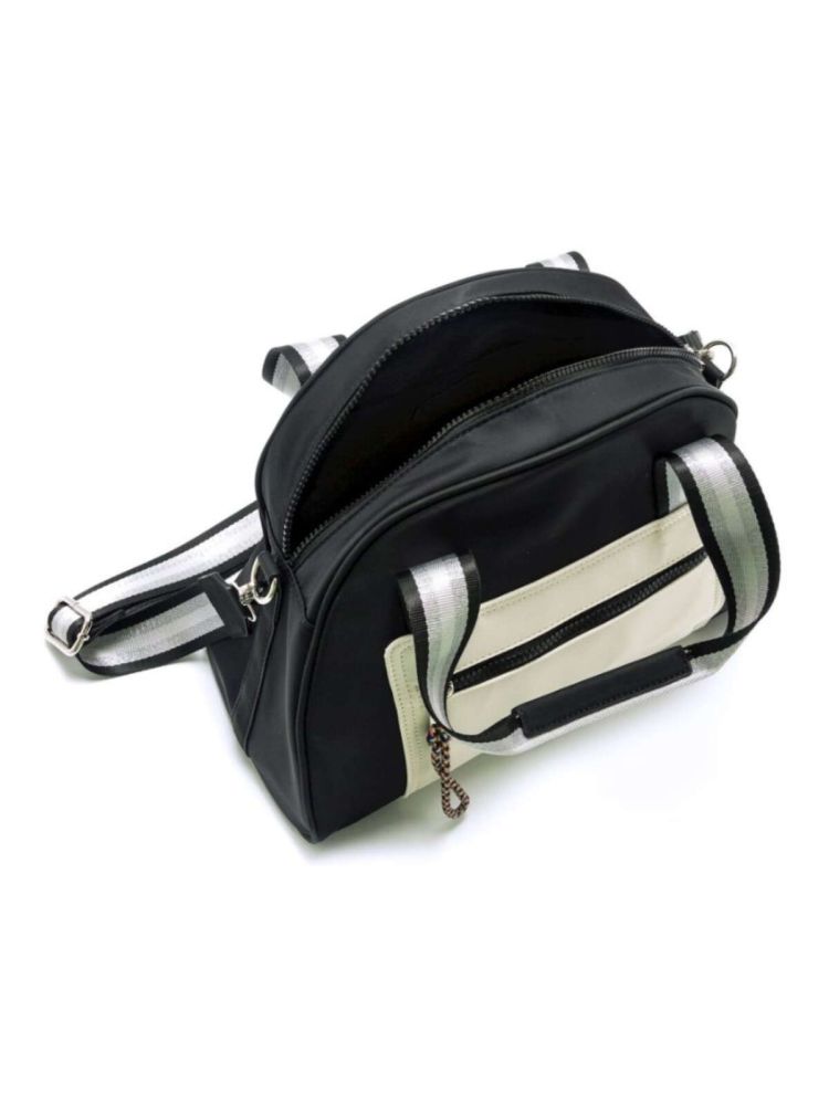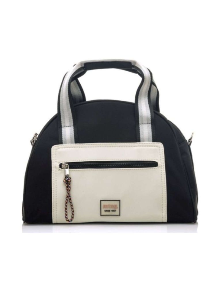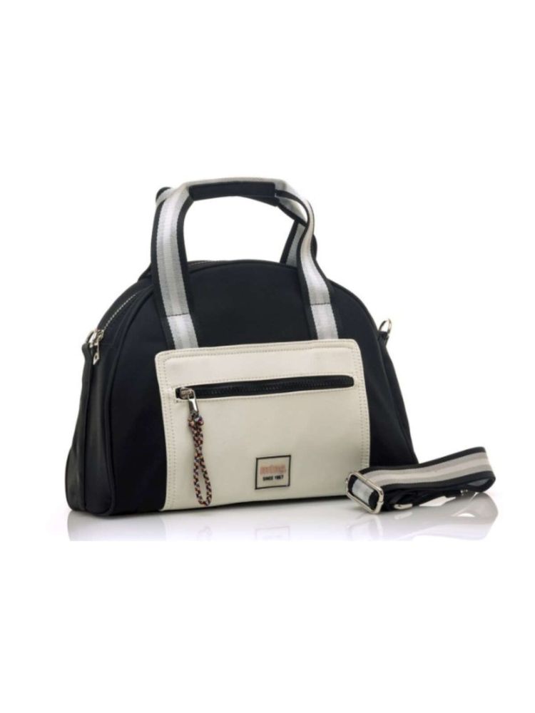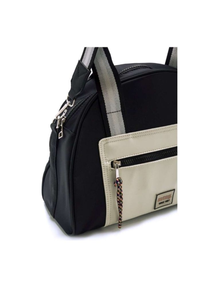 Bolso Aeron Mustang para mujer. De inspiración bowling color negro. Su estilo es casual-sport con detalles en color beige. Base: 16 cm. Altura: 26 cm. Ancho: 26 cm. Le aportará el toque extra de elegancia que tus looks sporty necesitaban.
