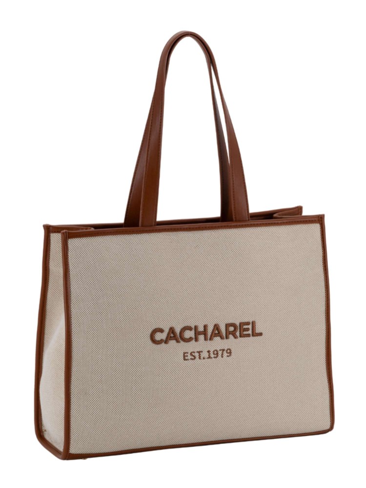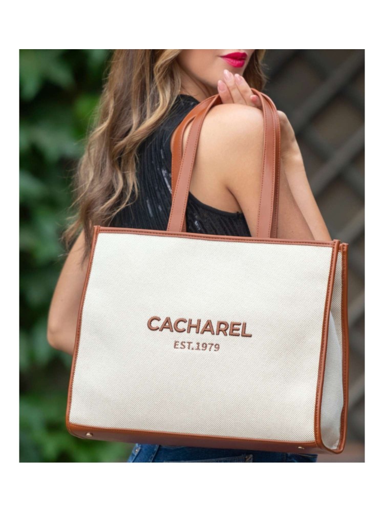 Shopper elaborado en lona de algodón y material vegano con el logo bordado en la parte delantera. Amplio con varios compartimentos. Cierre con cremallera y varios bolsillos interiores. Medidas aproximadas: 34 cm (largo) x 13 cm (ancho) x 30 cm (alto)