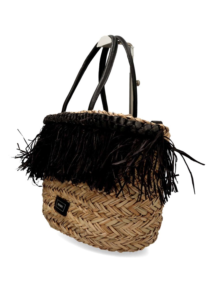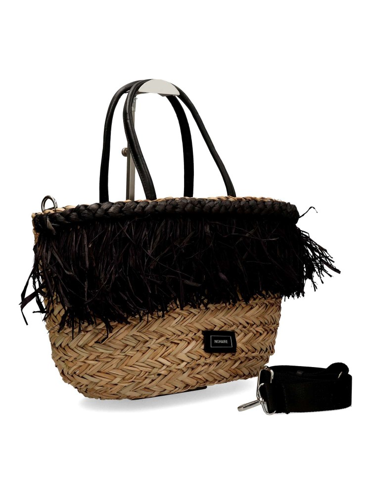 NOA & IRE Bolso capazo rafia flecos color negro