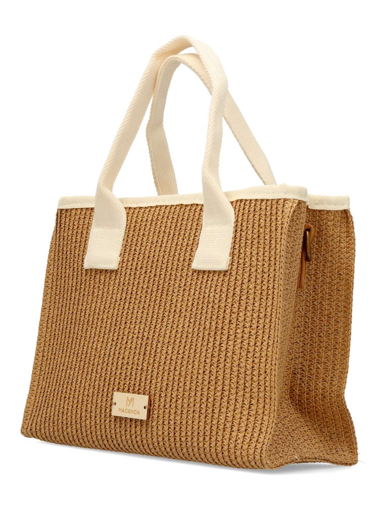 MAC & NOA Bolso de mano y bandolera rafia beige