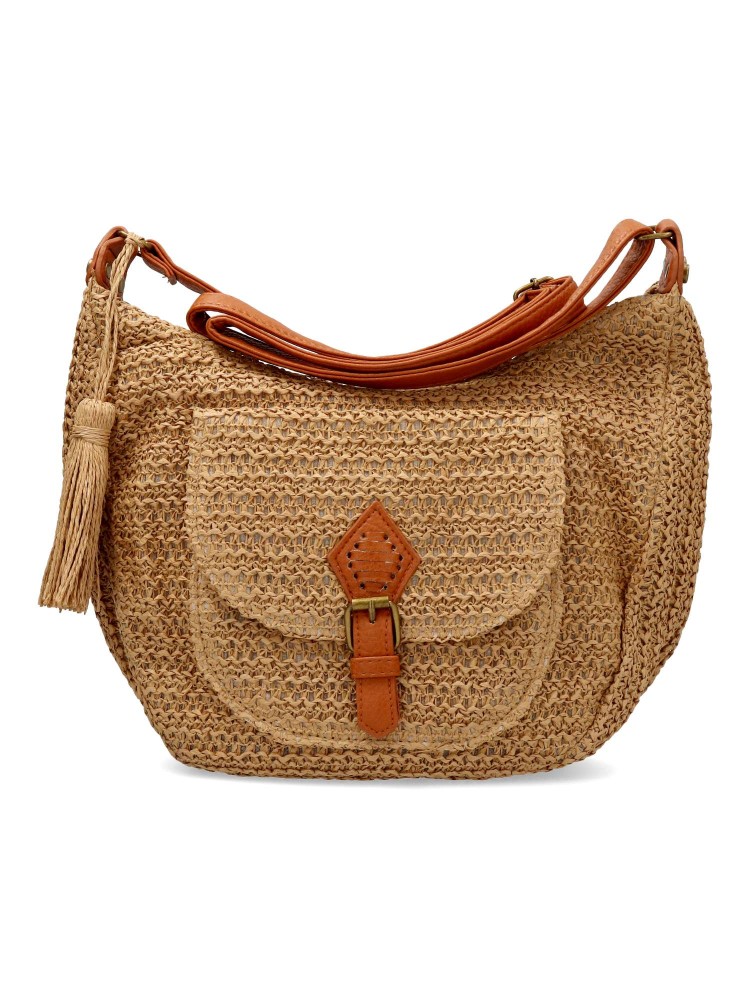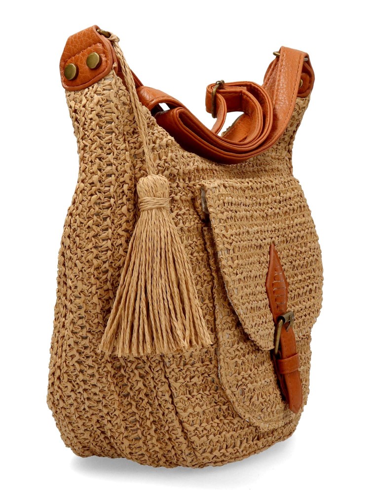 MAC & NOA Bolso bandolera rafia tostado mujer
