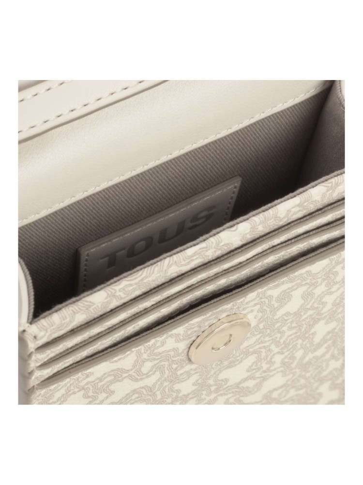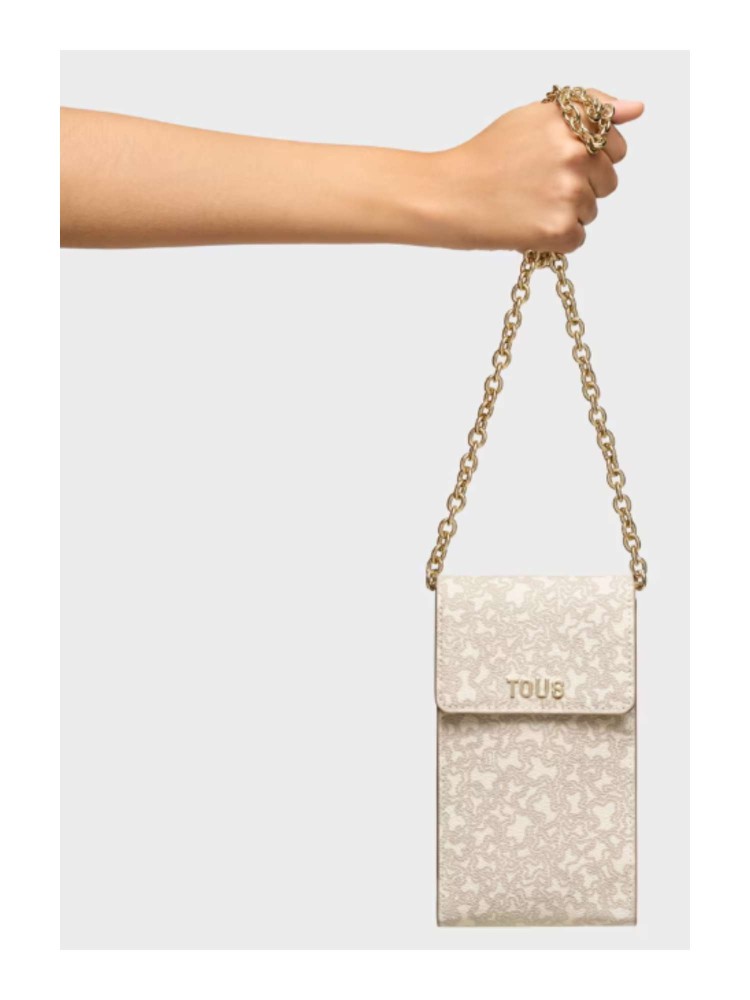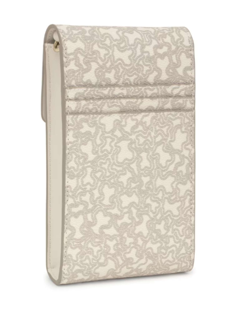 Funda de móvil colgante Kaos Mini Lines de lona con detalles de poliuretano en color beige. Cierre de botón magnético. Tiene seis ranuras para tarjetas. Asa bandolera fija. Medidas (alto x ancho x fondo): 19,5 x 10,9 x 3,7 cm.