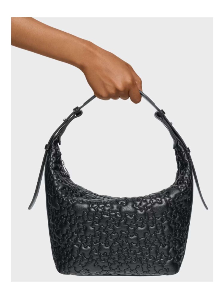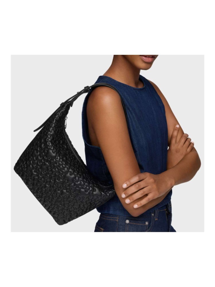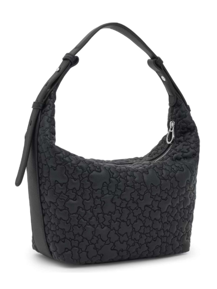 Bolso de hombro mediano TOUS Puffy bear de poliuretano en color negro. Cierre de cremallera. Bolsillo interior con cremallera. Asa de hombro ajustable. Medidas (alto x ancho x fondo): 24 x 32 x 12 cm.