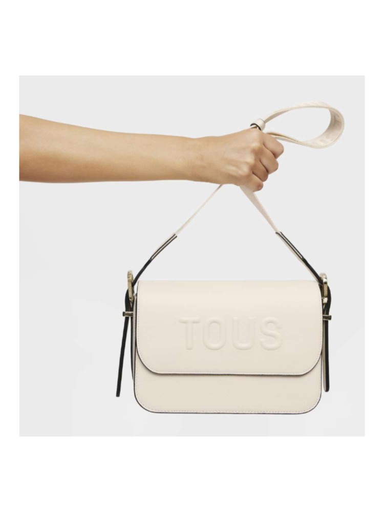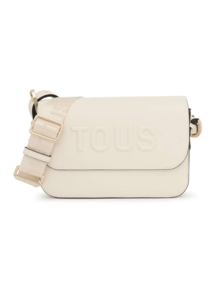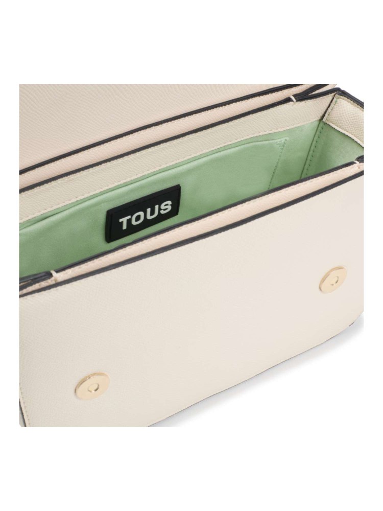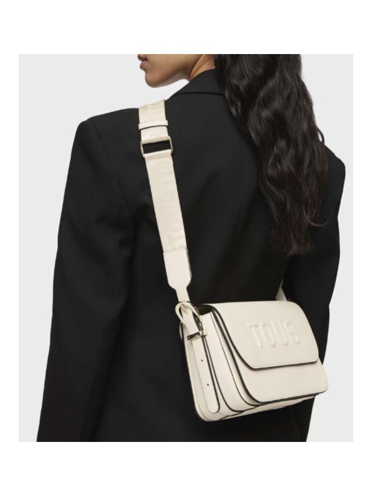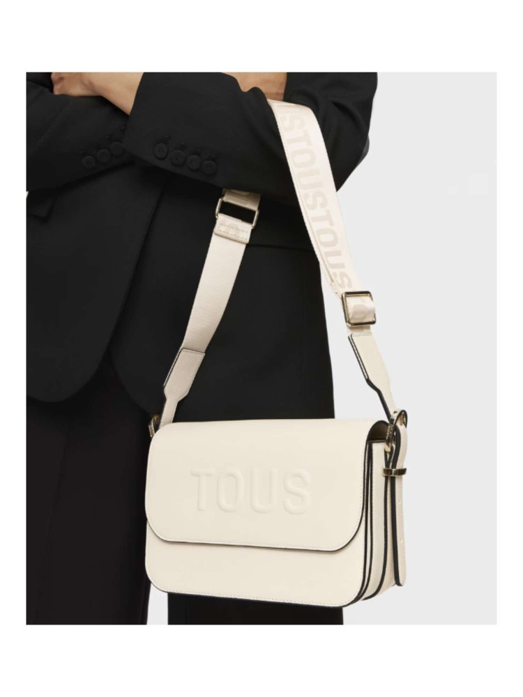 Bolso bandolera mediano TOUS Brenda de poliuretano en color beige. Cierre de solapa con botón magnético. Bolsillo interior abierto. Asa bandolera ajustable. Medidas (alto x ancho x fondo): 17 x 28 x 7 cm.