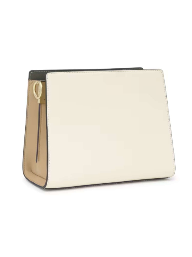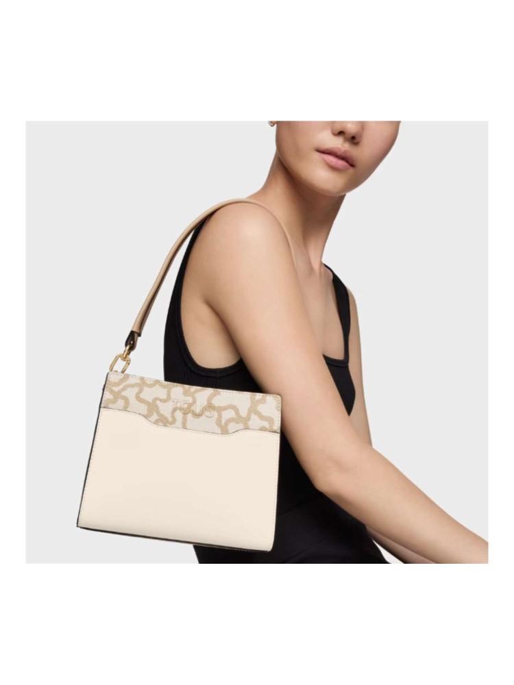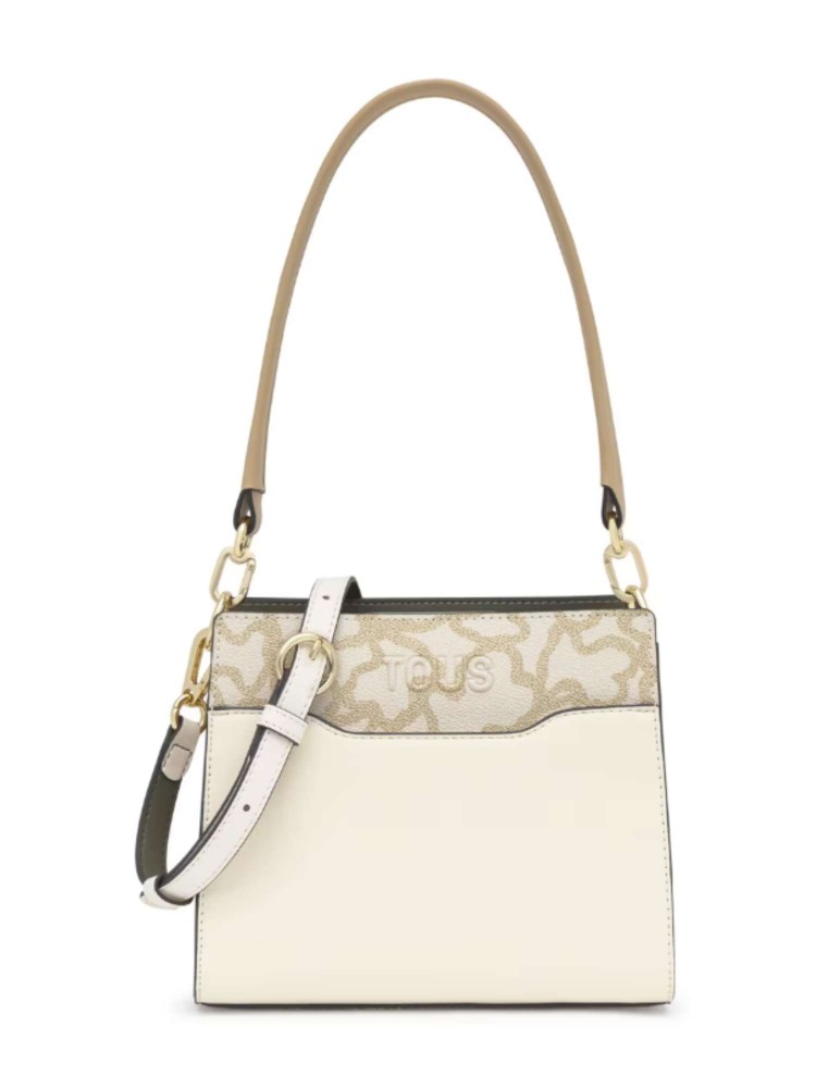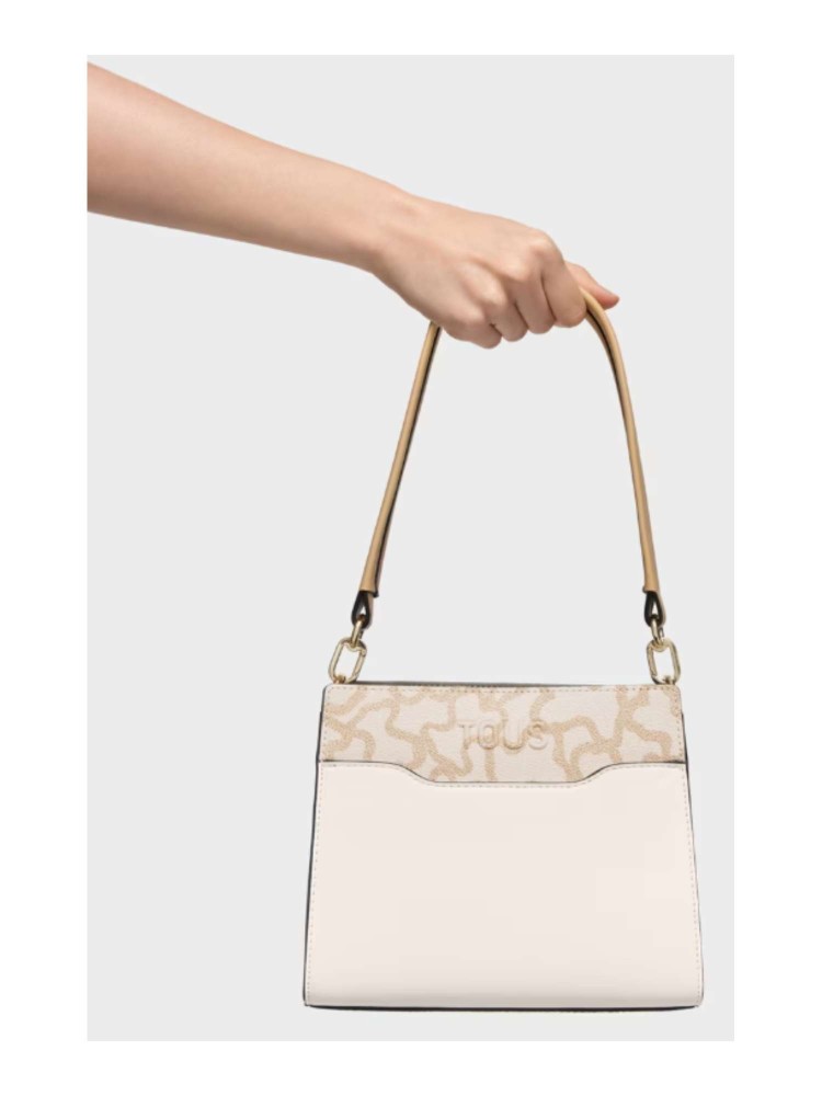Bolso shopper de poliuretano en color marfil. Cierre magnético. Dos compartimentos separados. Bolsillo interior y exterior. Dos asas de hombro desmontables y asa bandolera ajustable y desmontable. Medidas (alto x ancho x fondo): 16 x 20 x 12 cm.