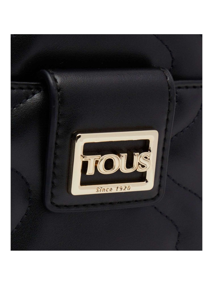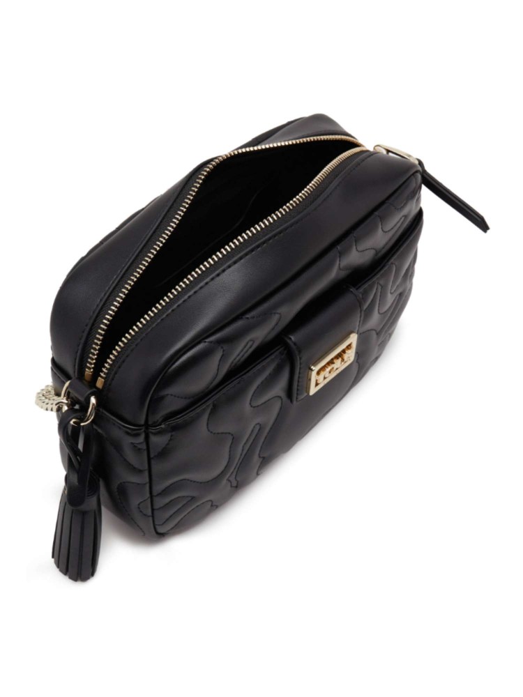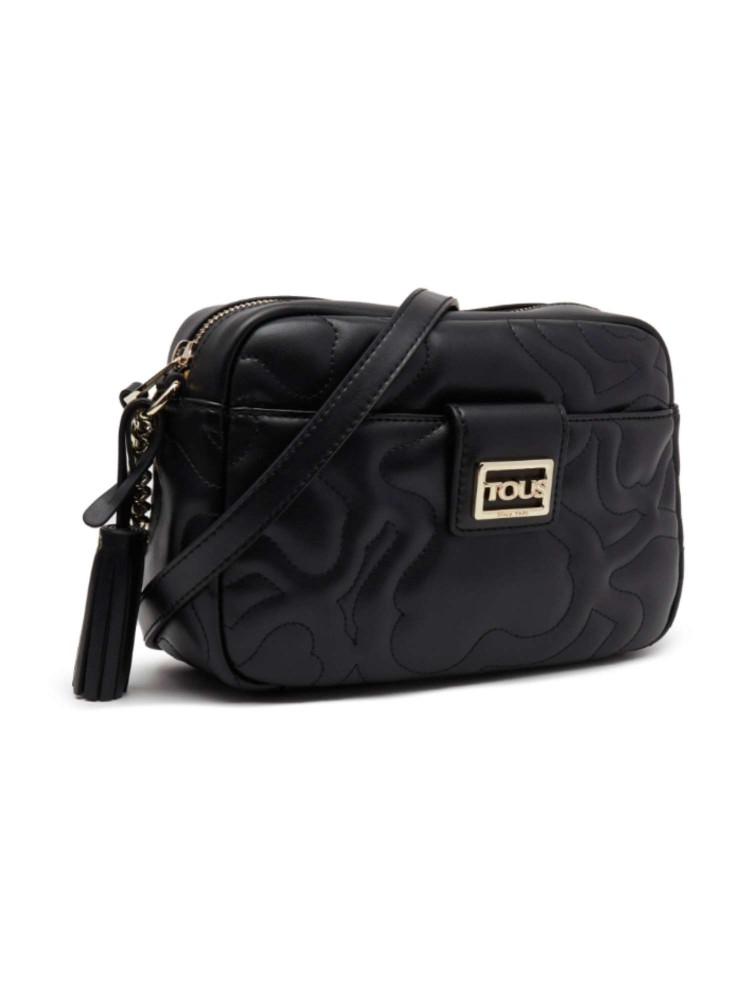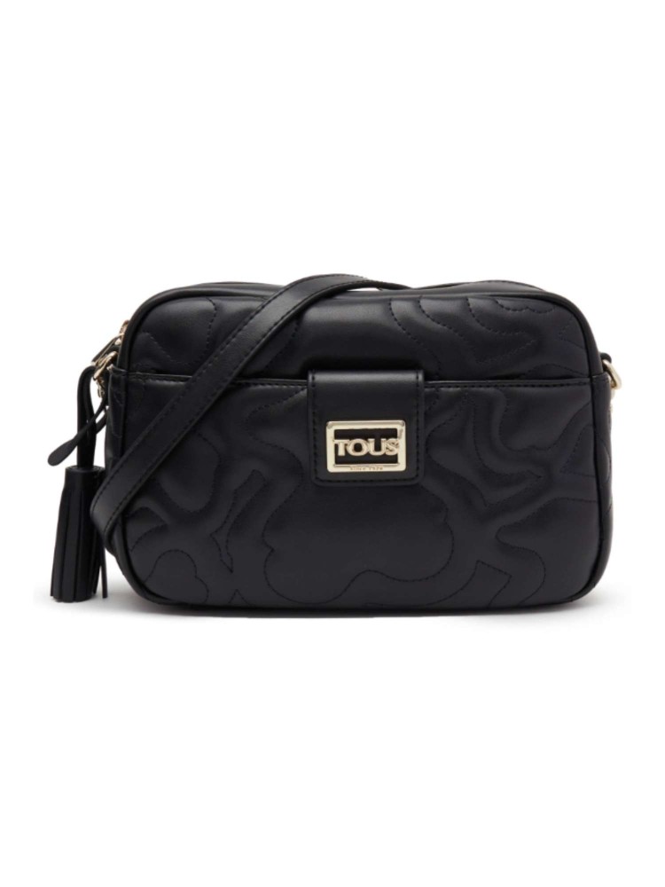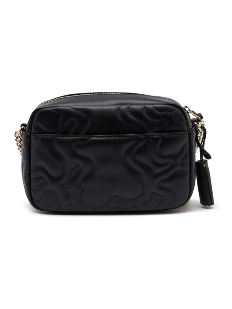 Bandolera pequeña de poliuretano acolchado en forma de osos con acabado efecto piel en color negro. Correa larga de bandolera ajustable. Cierre de cremallera. Un bolsillo interior y dos bolsillos exteriores planos. Medidas: 8 x 25 x 16 cm.