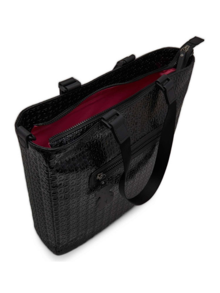 Bolso shopper Lindsay. Vinilo hidrófugo con acabado charol. Medidas: 34x34x8 cm.