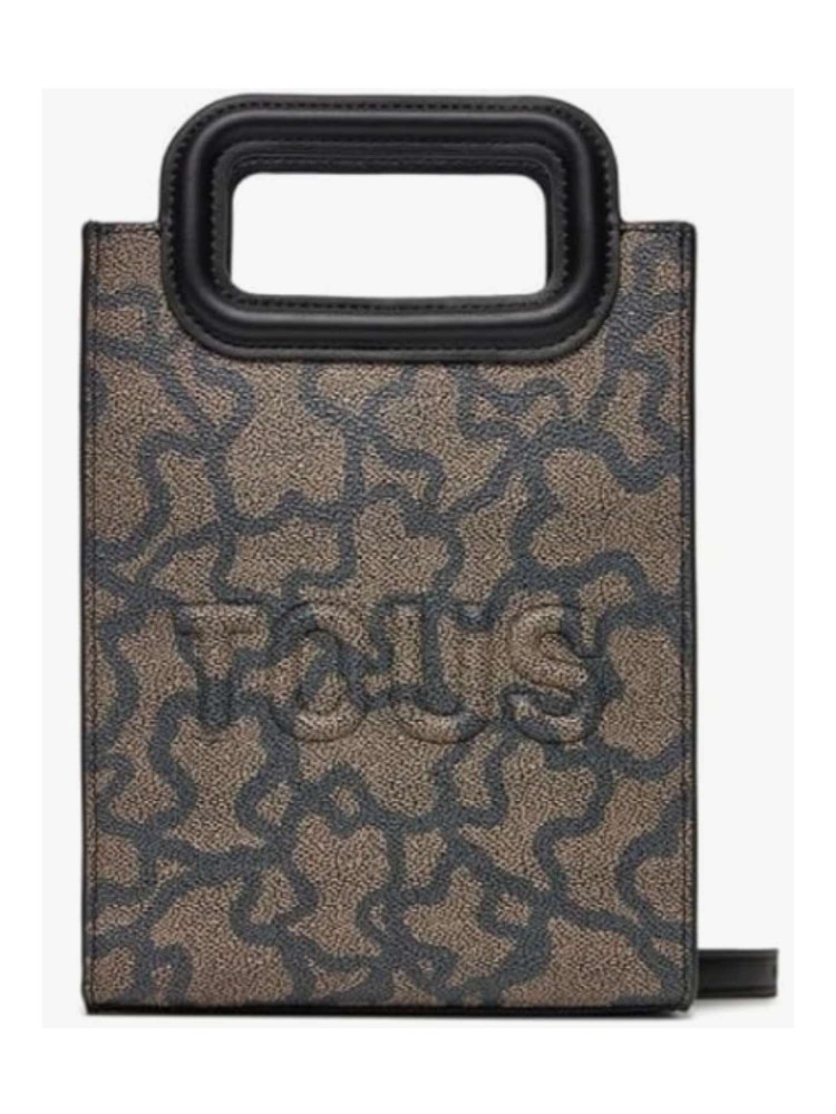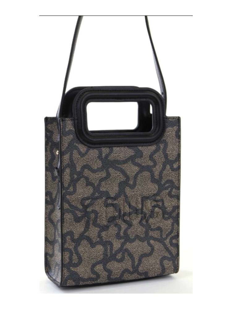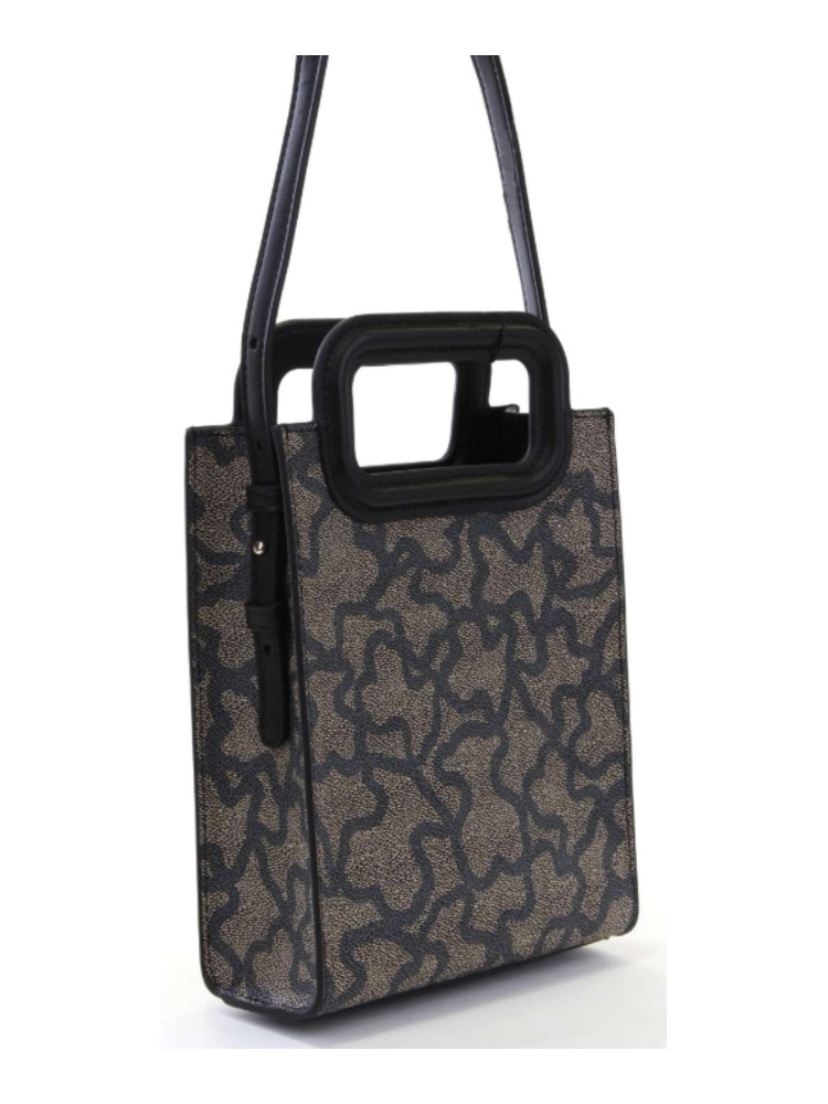 Mini bolso TOUS Kaos Icon de lona con estampado Kaos en color negro y gris con detalles en poliuretano. Cierre con botón magnético. Asa bandolera ajustable y extraíble y asas fijas de mano. Medidas (alto x ancho x fondo): 20 x 16 x 7 cm.