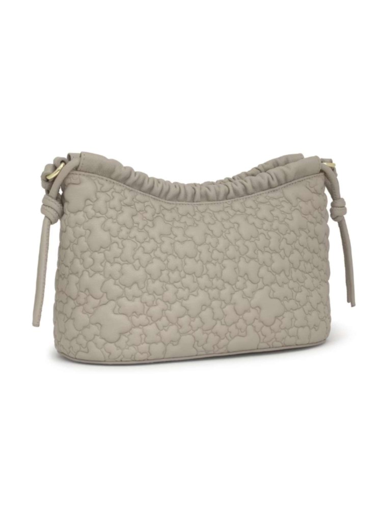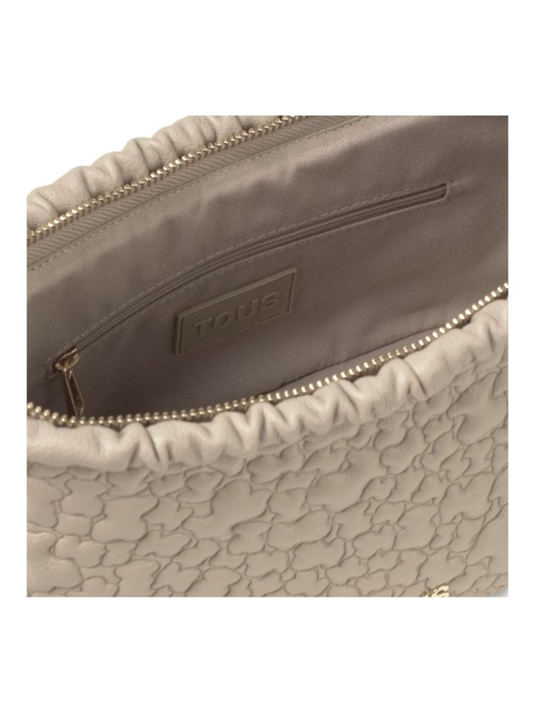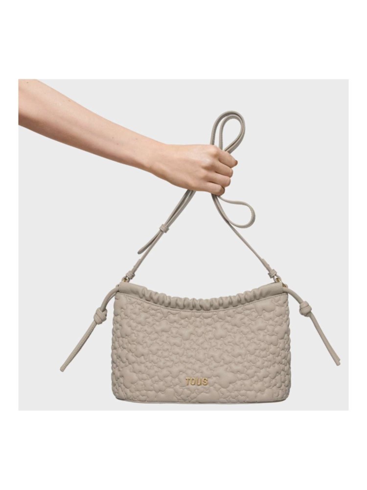 Bolso bandolera mediano TOUS Puffy Bear de poliuretano en color topo. Cierre de cremallera. Bolsillo interior con cremallera. Asa bandolera ajustable. Medidas (alto x ancho x fondo): 17 x 28 x 12 cm.
