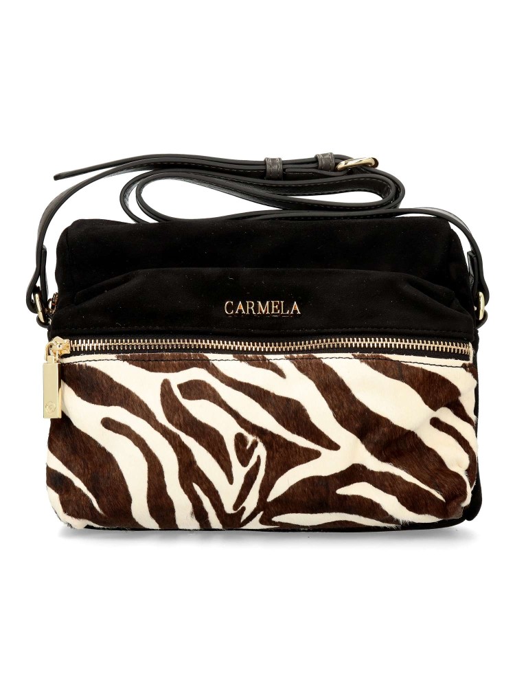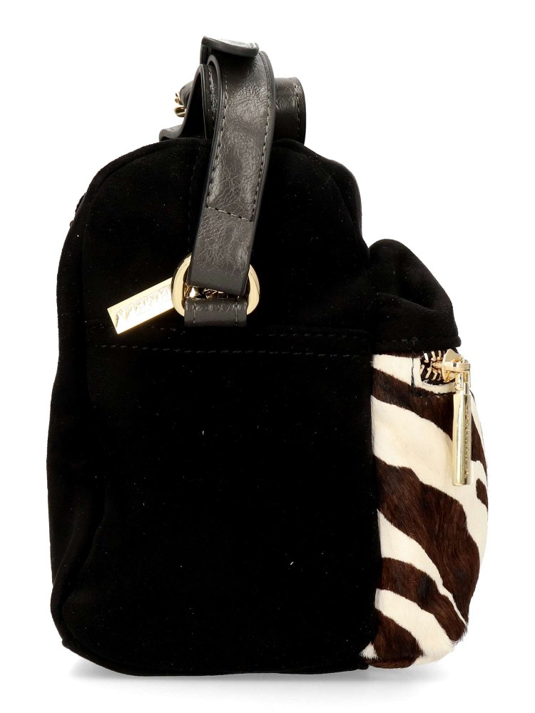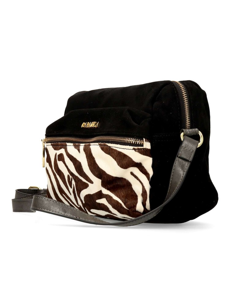 Bolso de mujer fabricado en textil combinado con piel animal print, tipo bandolera. Correa ajustable. Este bolso destaca por su diseño moderno y sofisticado, con cierre mediante cremallera. Práctico y cómodo para el uso diario. Medidas: 25 x 27 x 14 cm.