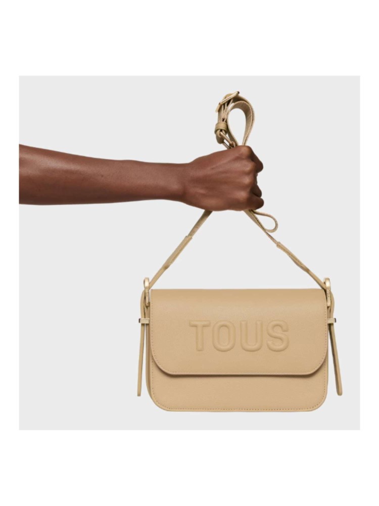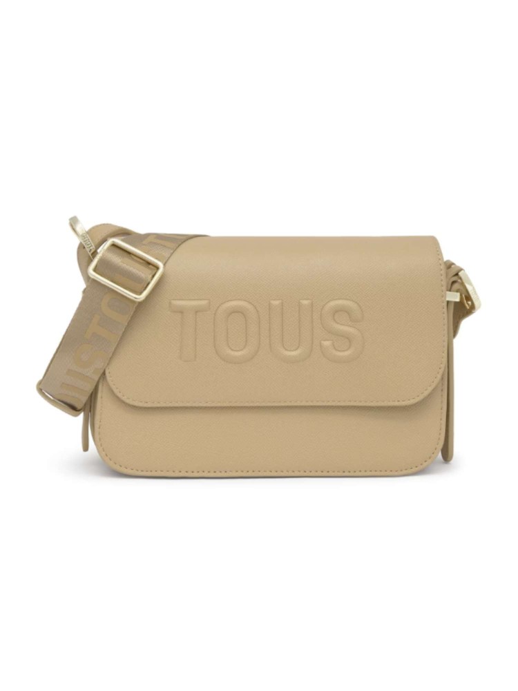 Bolso bandolera mediano TOUS Brenda de poliuretano en color arena. Cierre de solapa con botón magnético. Bolsillo interior abierto. Asa bandolera ajustable. Medidas (alto x ancho x fondo): 17 x 28 x 7 cm.