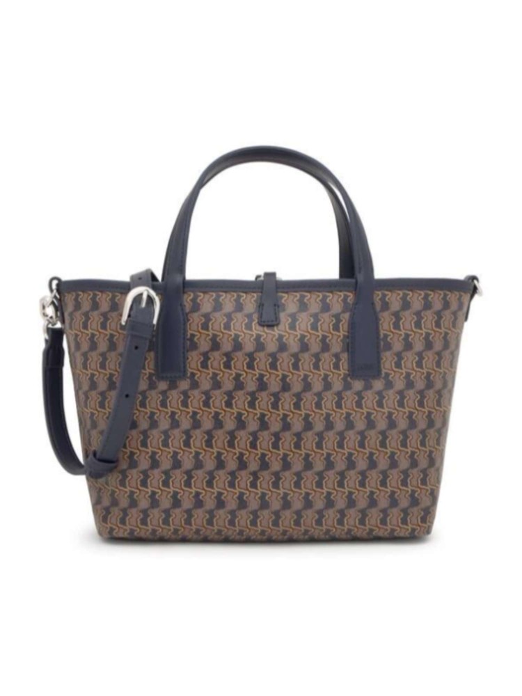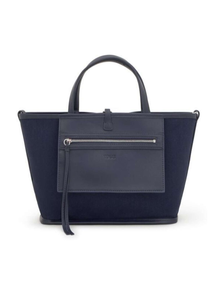 Bolso capazo mediano reversible TOUS Double Way Bear. Diseño reversible. Cierre de hebilla. Asas fijas de mano y asa bandolera ajustable y desmontable. Bolsillo interior y exterior con cremallera. Medidas (alto x ancho x fondo): 18,5 x 35 x 9,5 cm.