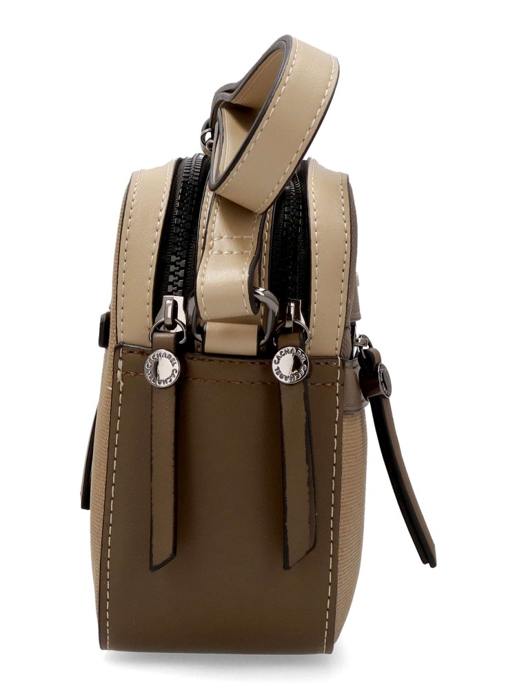 Bandolera de tamaño mediana de color castaño con doble compartimento. Práctica y moderna, ideal para dar un toque chic a cualquier estilismo diario. Varios bolsillos en interior. Medidas aproximadas: 26 cm (largo) x 8 cm (ancho) x 17 cm (alto).