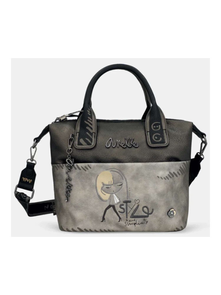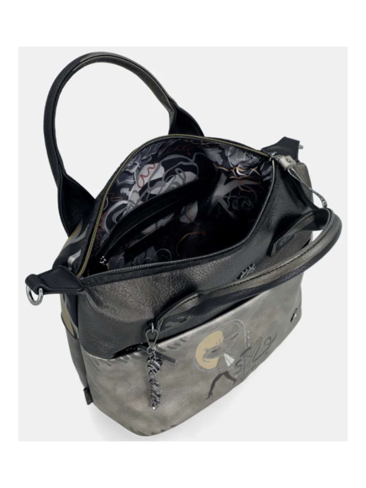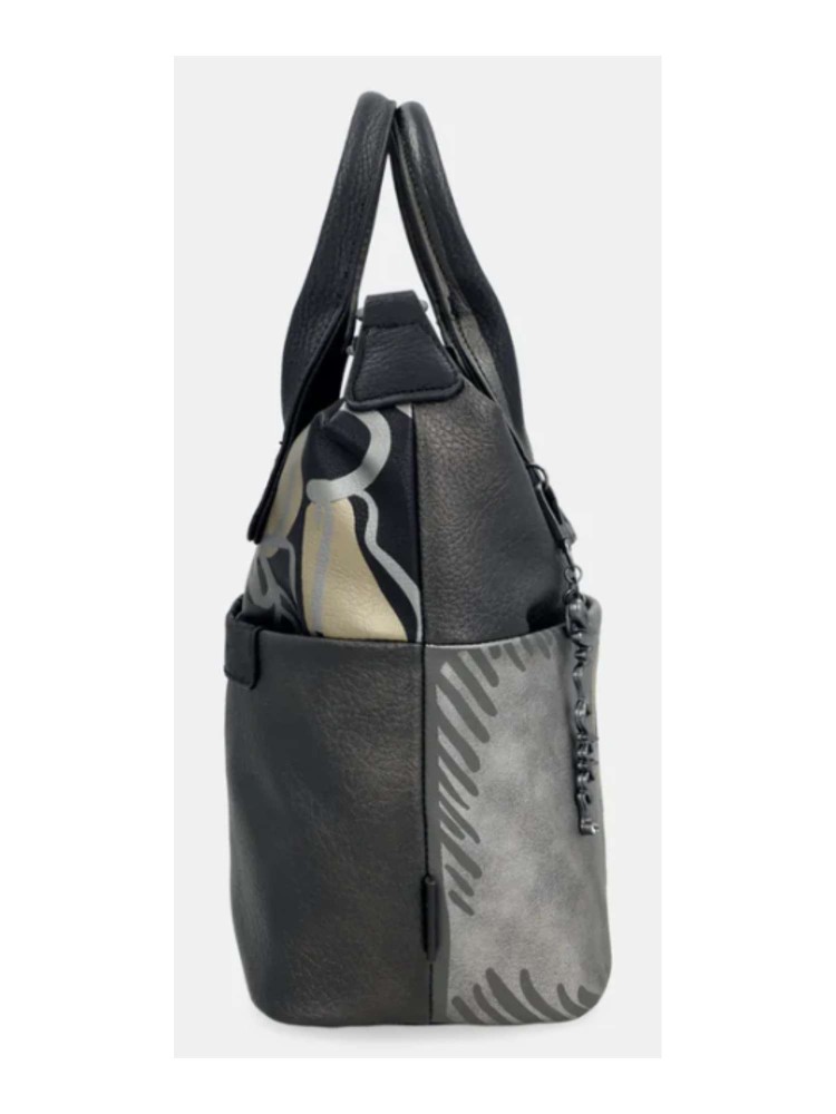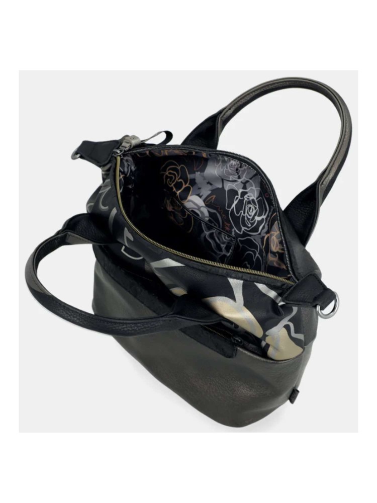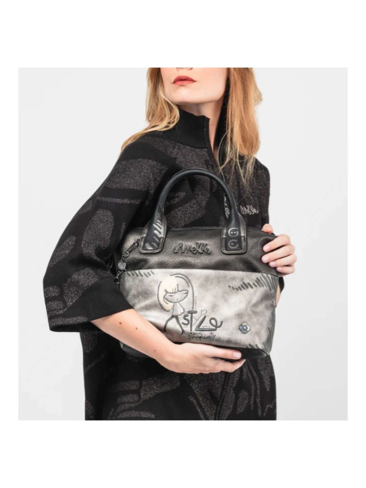 Bolso pequeño de mujer con dos asas cortas y bandolera. Cierre de cremallera. Varios bolsillos en el interior y uno trasero. Medidas (Largo x Alto x Ancho): 28 cm/26 cm/15 cm.