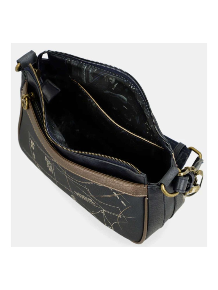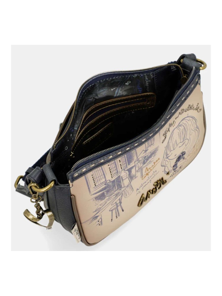Bolso bandolera pequeña para mujer, con cierre de cremallera. Varios bolsillos en el interior y uno trasero. Asa bandolera. Medidas (Largo x Alto x Ancho): 25 cm/16 cm/8 cm