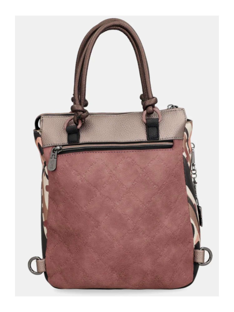 Bolso mochila con asa corta y cierre de cremallera. Varios bolsillos en el interior y exterior. Dos asas cortas y bandolera. Medidas (Largo x Alto x Ancho): 24 cm/28 cm/10 cm.