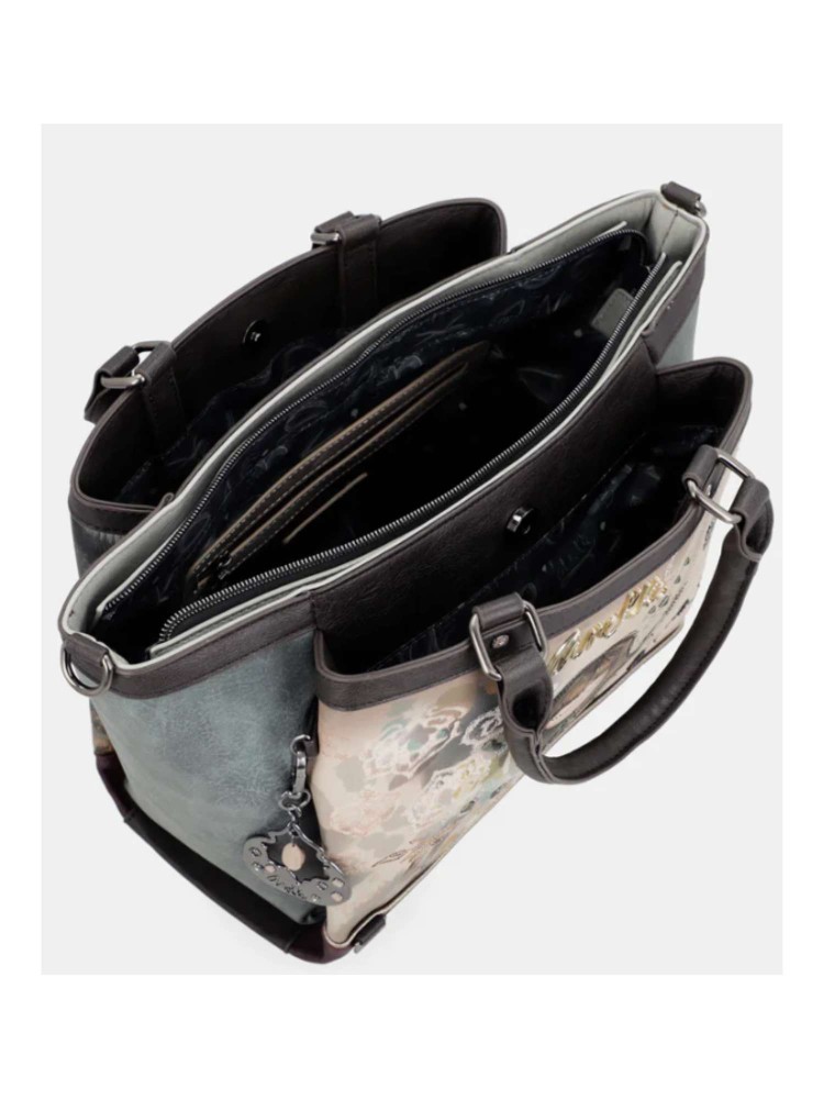 Bolso shopper de mujer. Cierre de cremallera. Varios bolsillos en interior y exterior. 2 asas de mano y bandolera. Medidas (Largo x Alto x Ancho): 36 cm/24 cm/15 cm