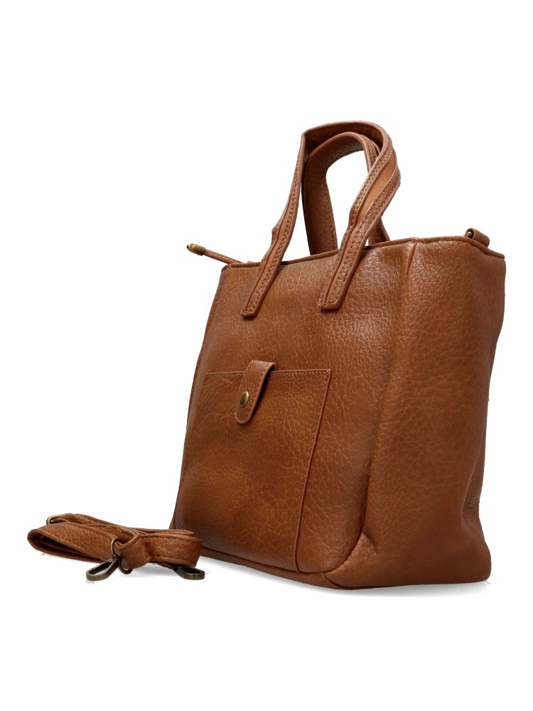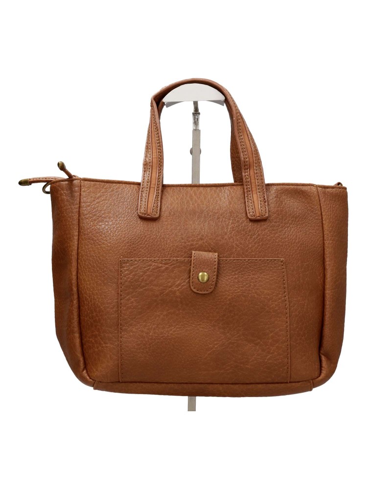 Bolso de mano para mujer. Con dos asas y cierre de cremallera. Color marrón. Medidas aproximadas (alto x ancho x fondo): 23 x 28 x 13 cm.