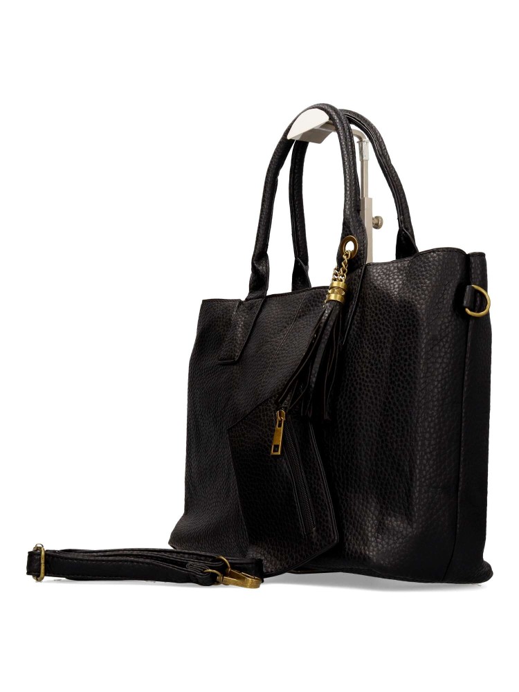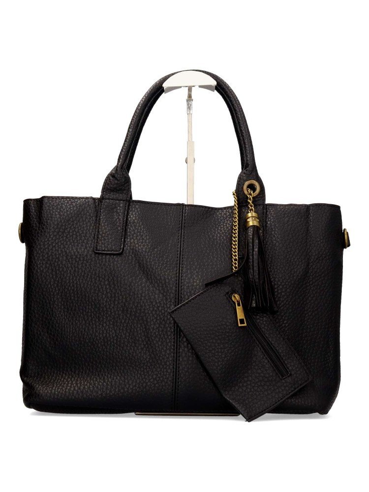 Bolso de hombro con bandolera y cierre de cremallera. Color negro. Medidas aproximadas (alto x ancho x fondo): 27 x 40 x 12 cm.