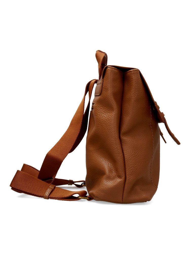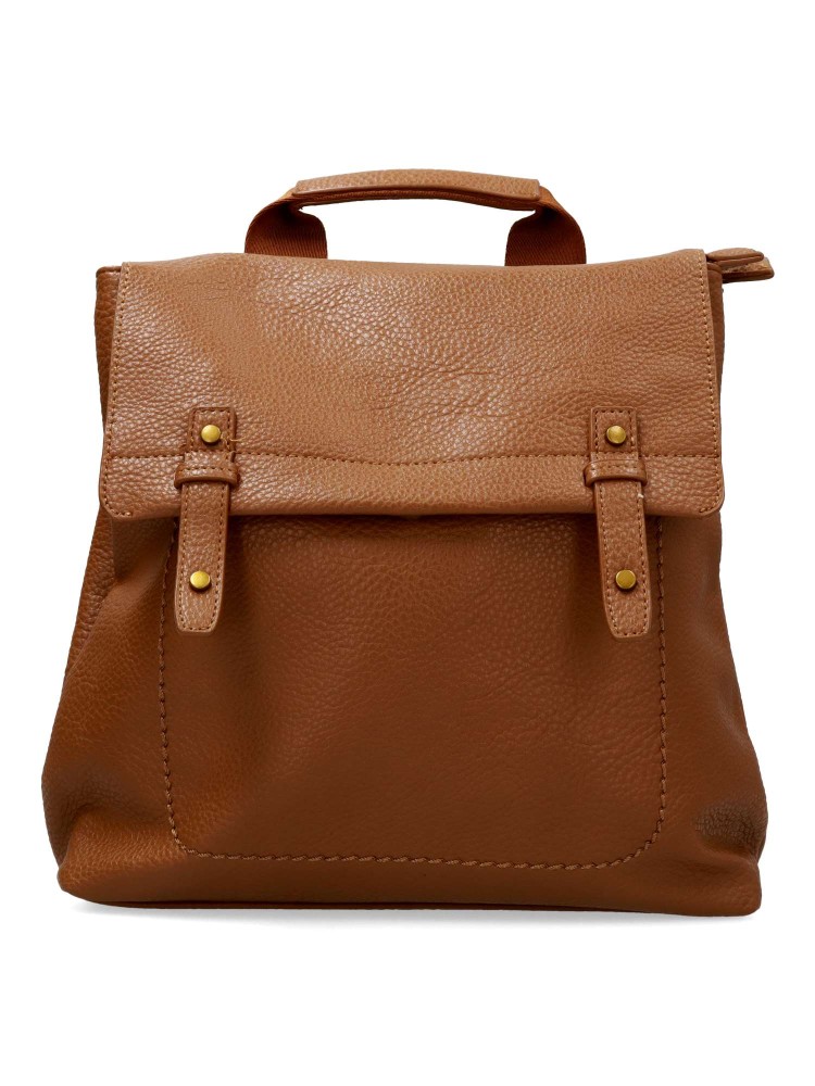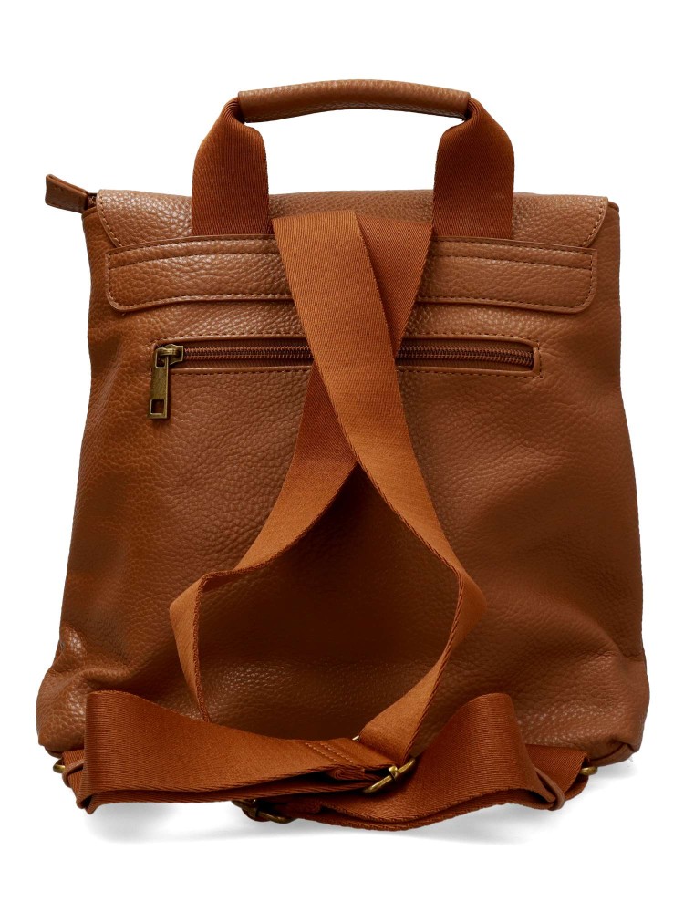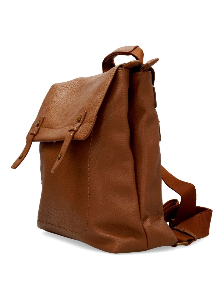 Bolso mochila de mujer con solapa y cierre de cremallera. Asas regulables. Color kaki. Medidas aproximadas (alto x ancho x fondo): 29 x 32 x 10,5 cm.
