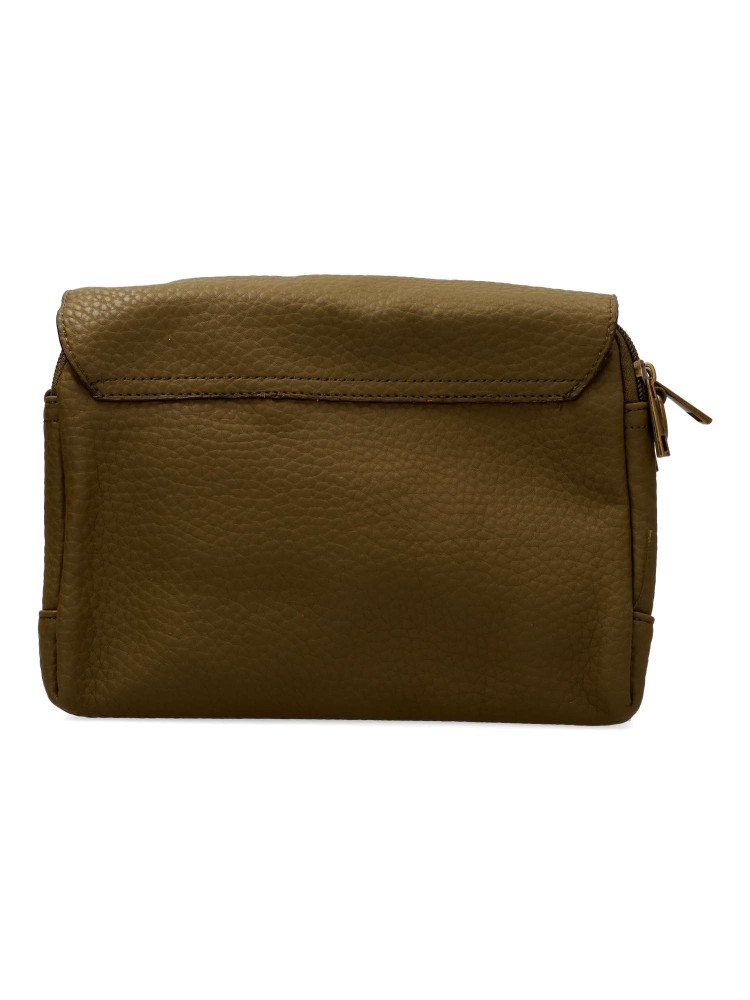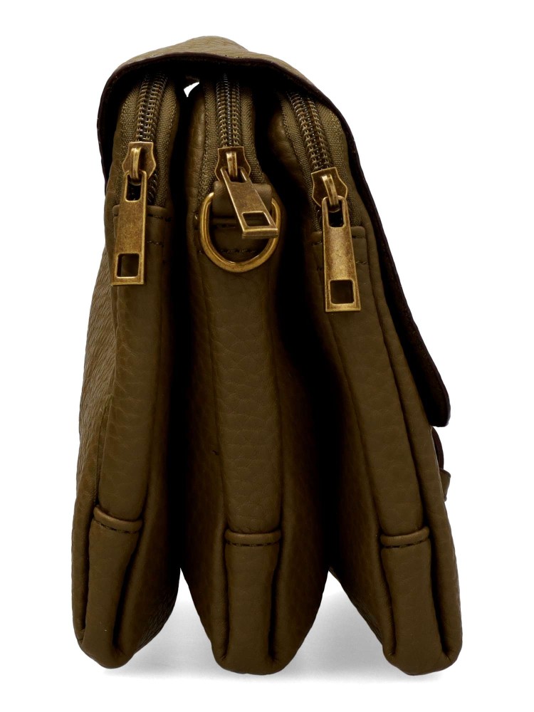 Bolso bandolera de mujer. Con solapa y cierre de cremallera. Color verde. Medidas aproximadas (alto x ancho x fondo): 18 x 23 x 10 cm.