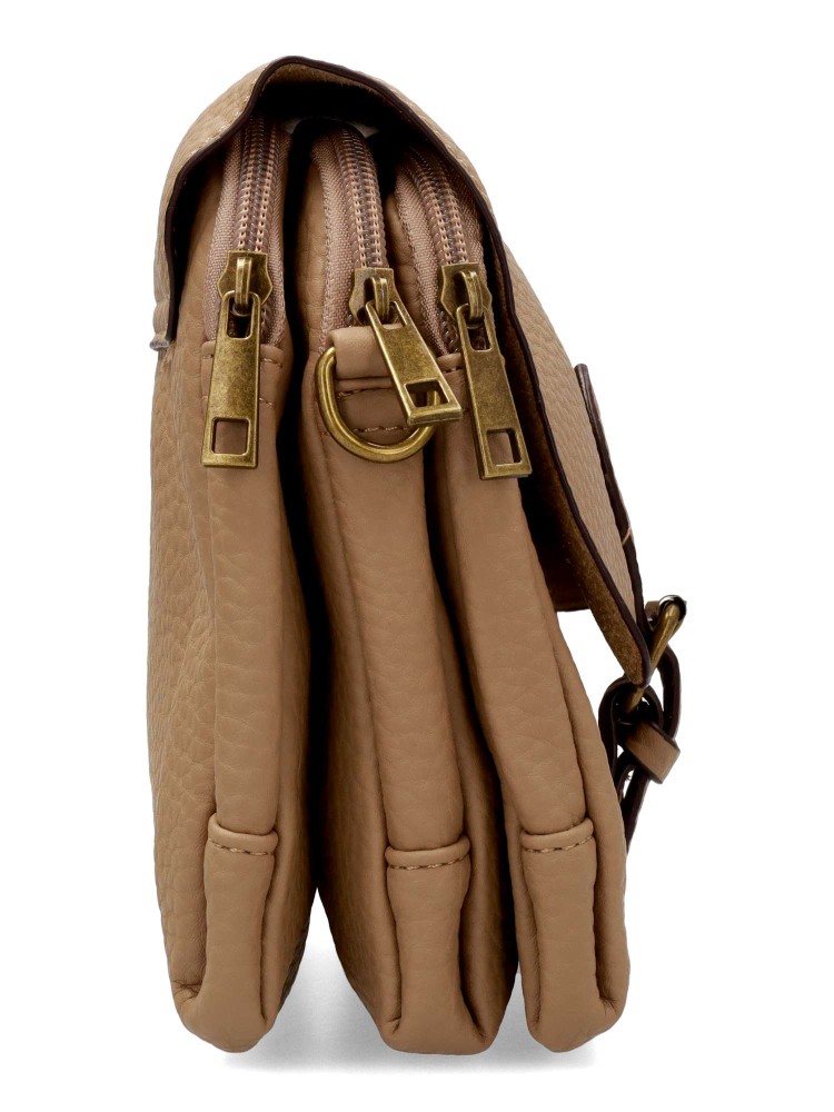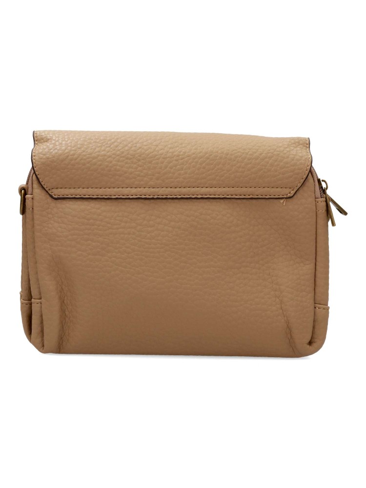 Bolso bandolera de mujer. Con solapa y cierre de cremallera. Color verde. Medidas aproximadas (alto x ancho x fondo): 18 x 23 x 10 cm.