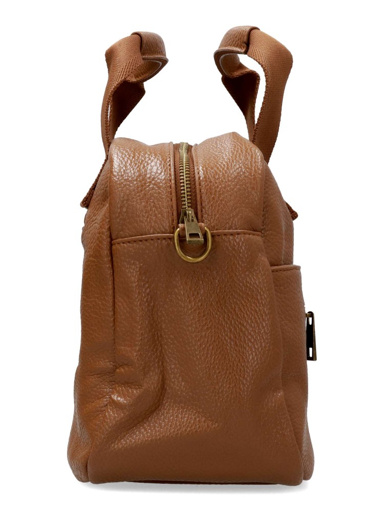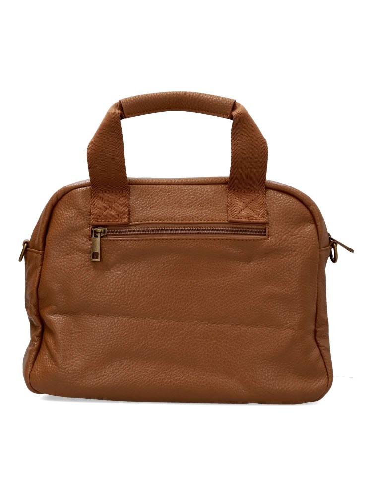 Bolso bandolera de mujer, con cierre de cremallera. Dos asas de mano. Color kaki. Medidas aproximadas (alto x ancho x fondo): 20 x 30 x 14 cm.