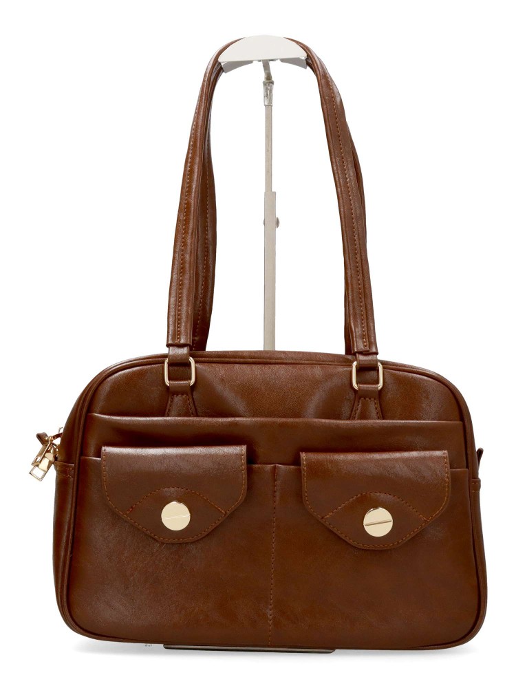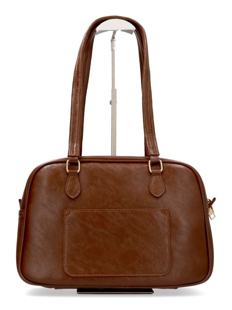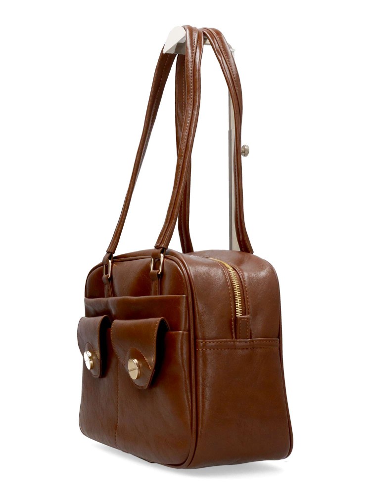 Bolso de hombro de mujer, con cierre de cremallera. Color cafe. Medidas aproximadas (alto x ancho x fondo): 21 x 31 x 12 cm.
