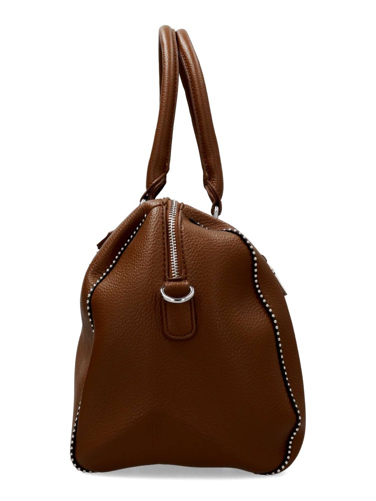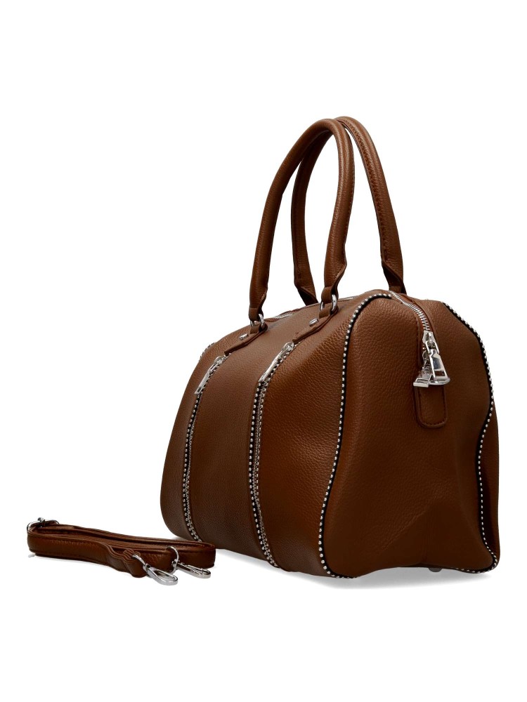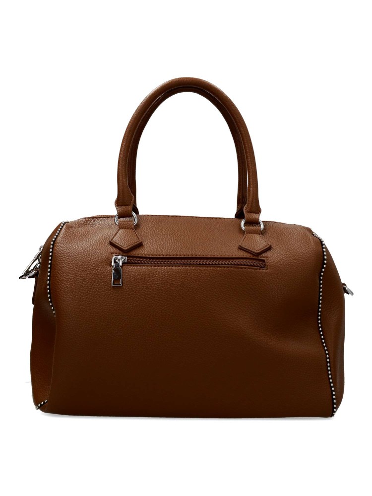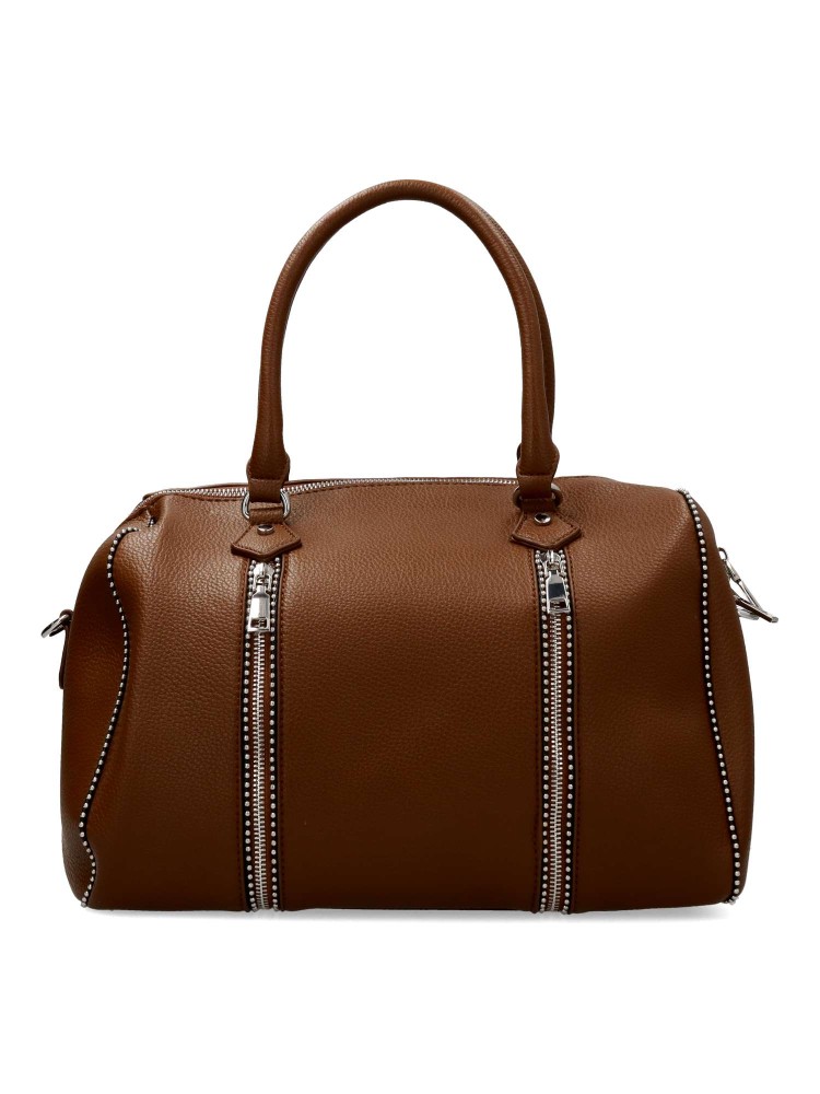 Bolso de mano con cierre de cremallera. Asa bandolera ajustable. Color marrón. Medidas aproximadas (alto x ancho x fondo): 25 x 32 x 13 cm.