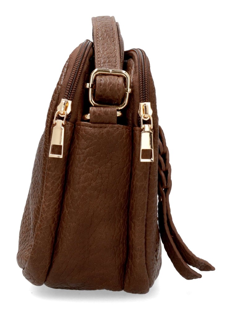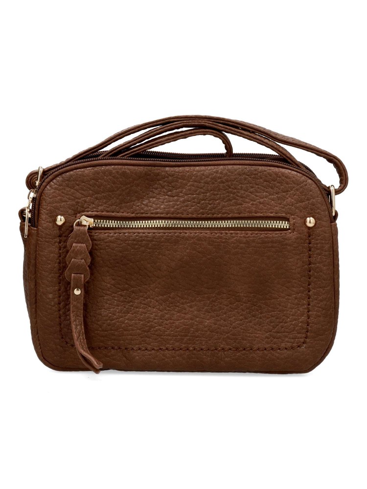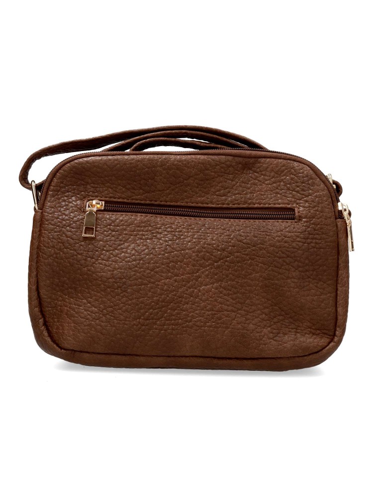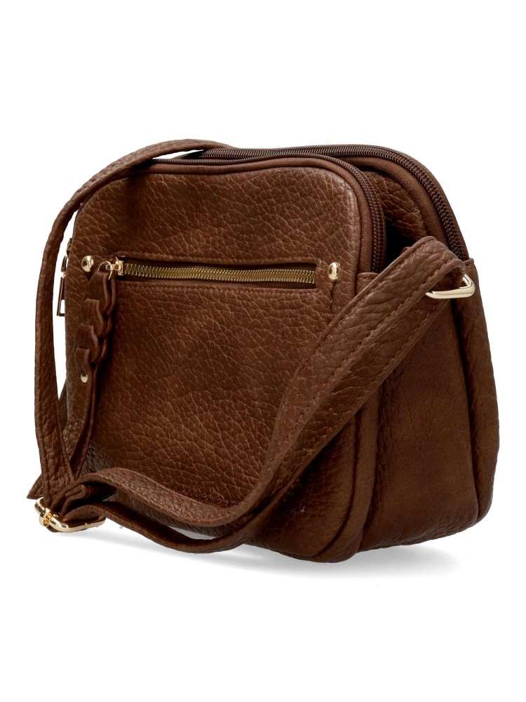 Bolso bandolera de mujer, con cierre de cremallera. Color cafe. Medidas aproximadas (alto x ancho x fondo): 17 x 25 x 9 cm.