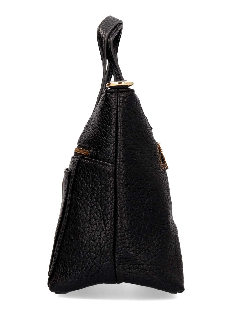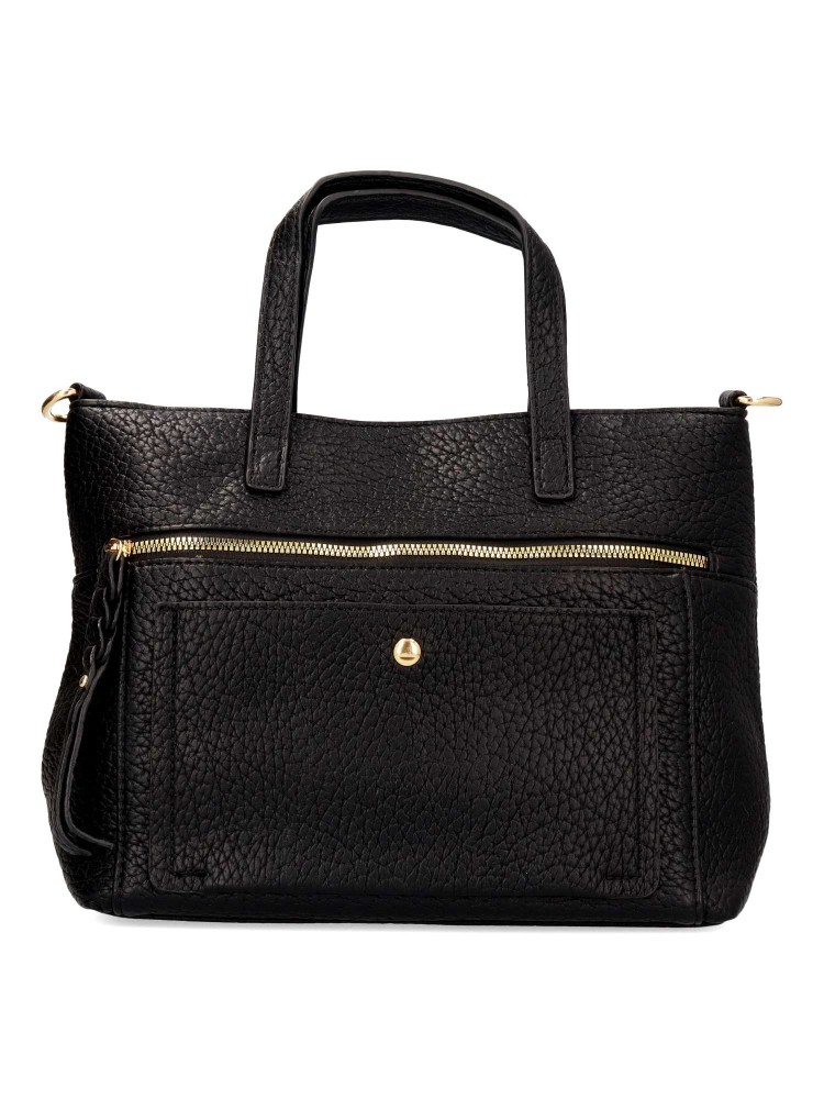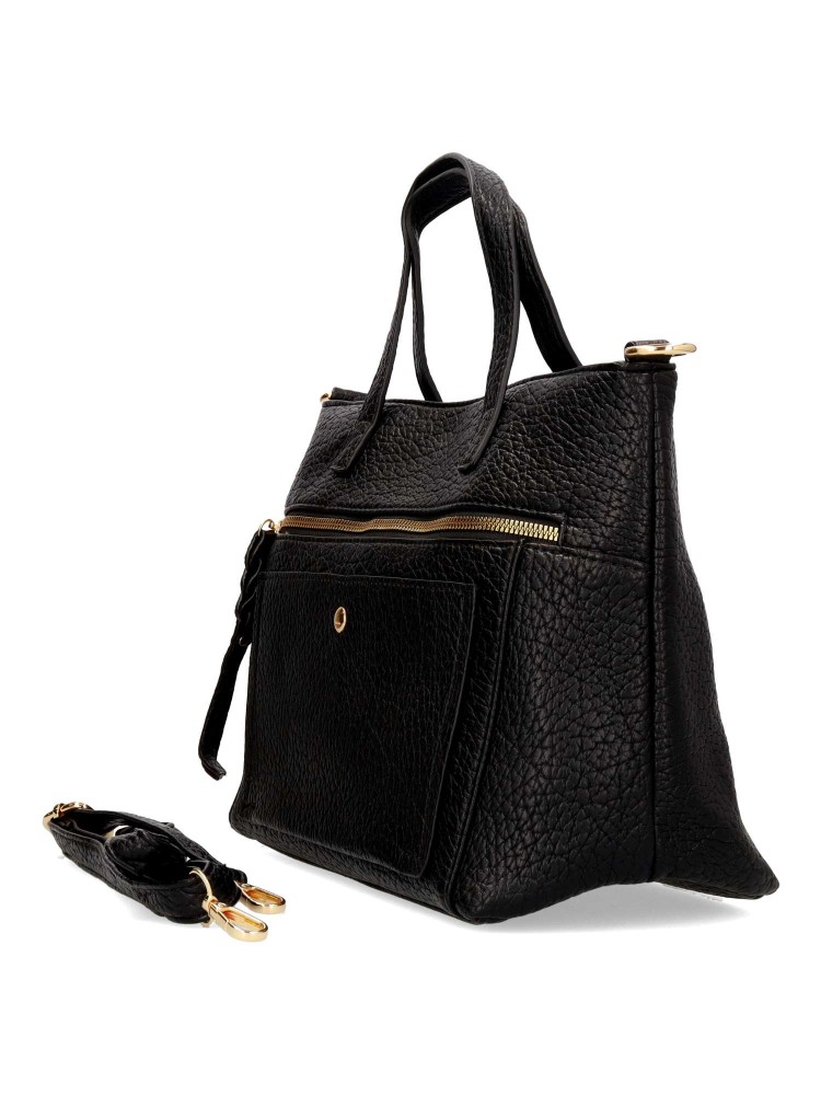 Bolso de mano para mujer, con bandolera y cierre de cremallera. Color negro. Medidas aproximadas (alto x ancho x fondo): 23 x 35 x 14 cm.